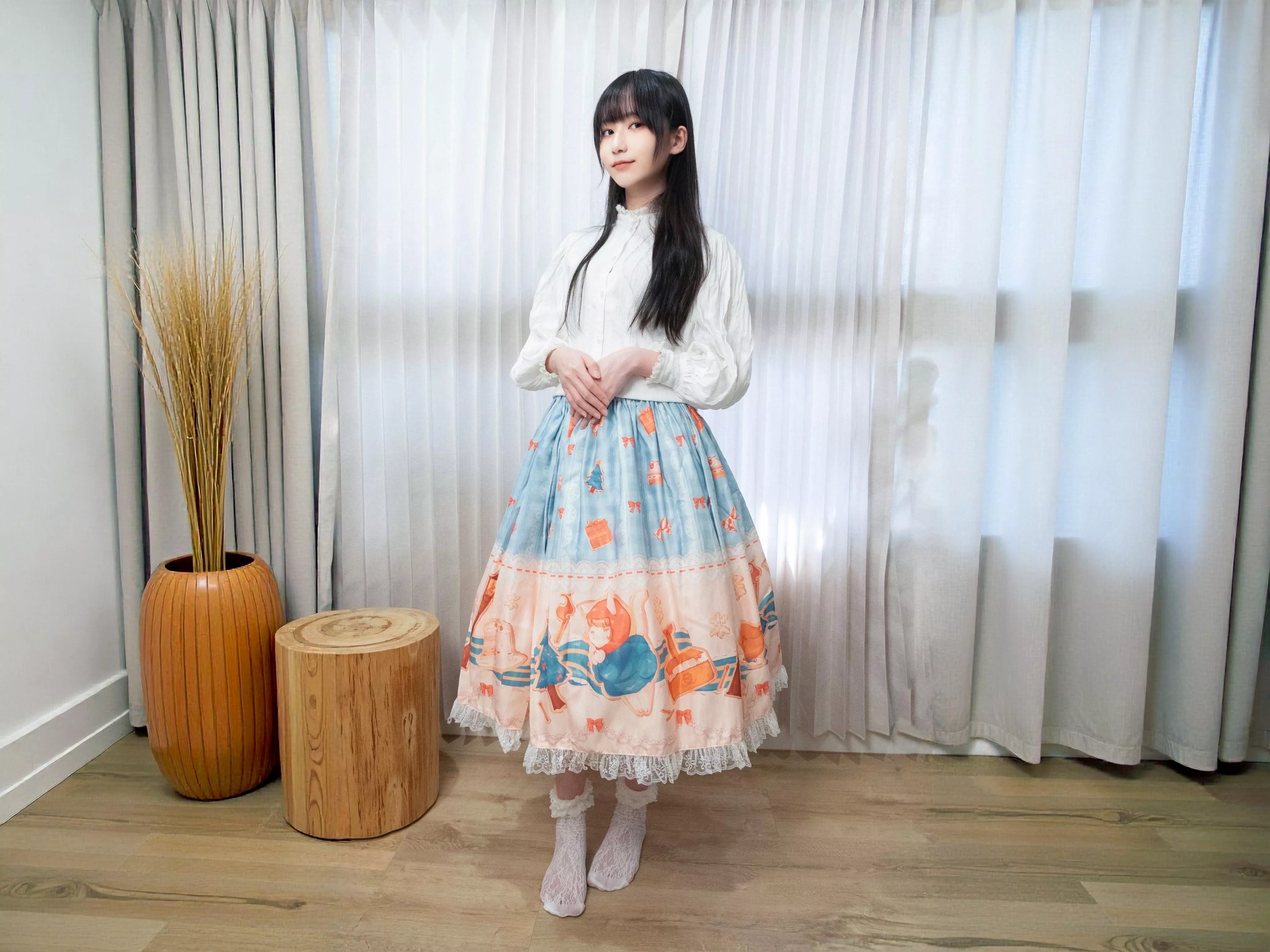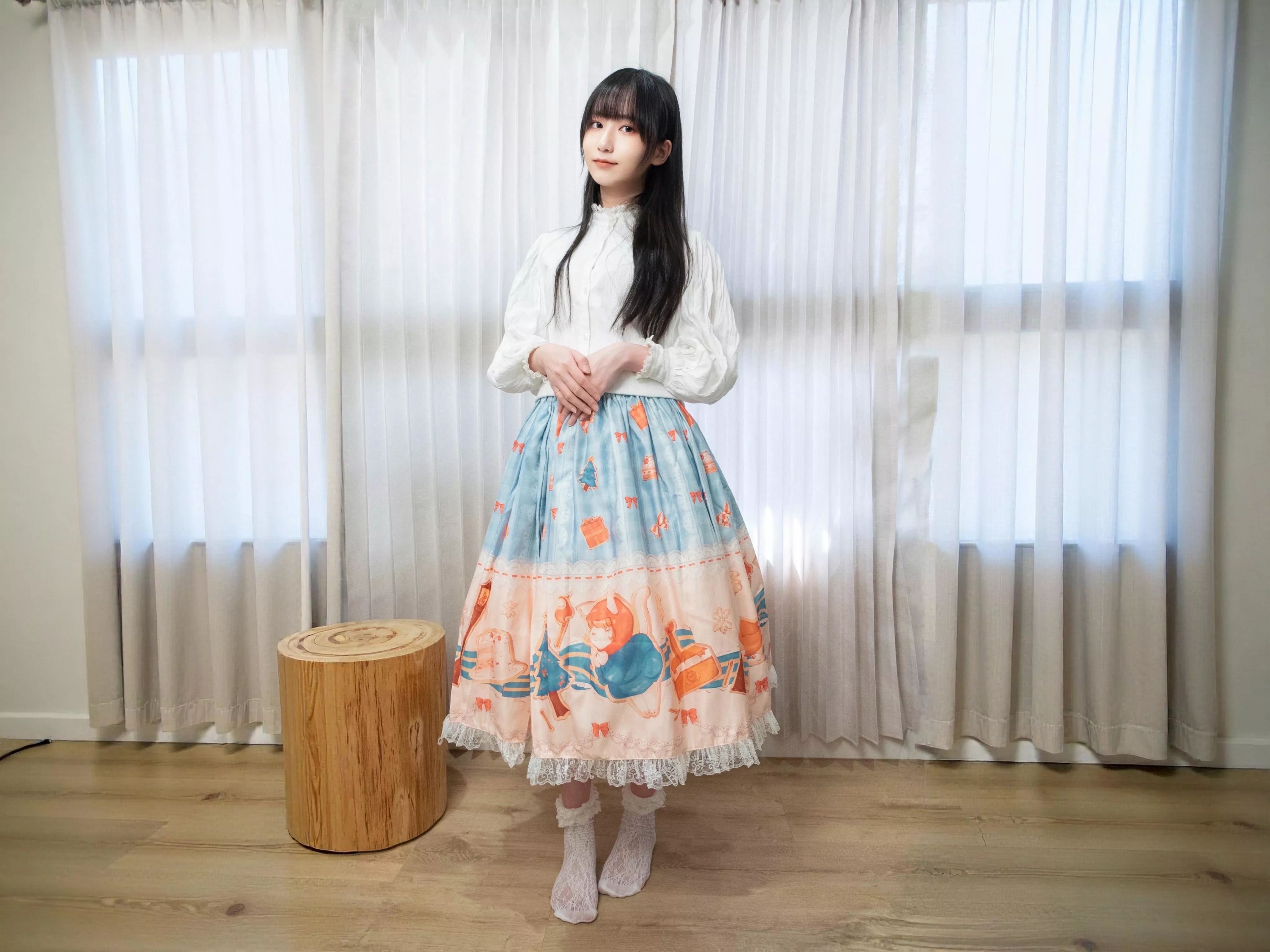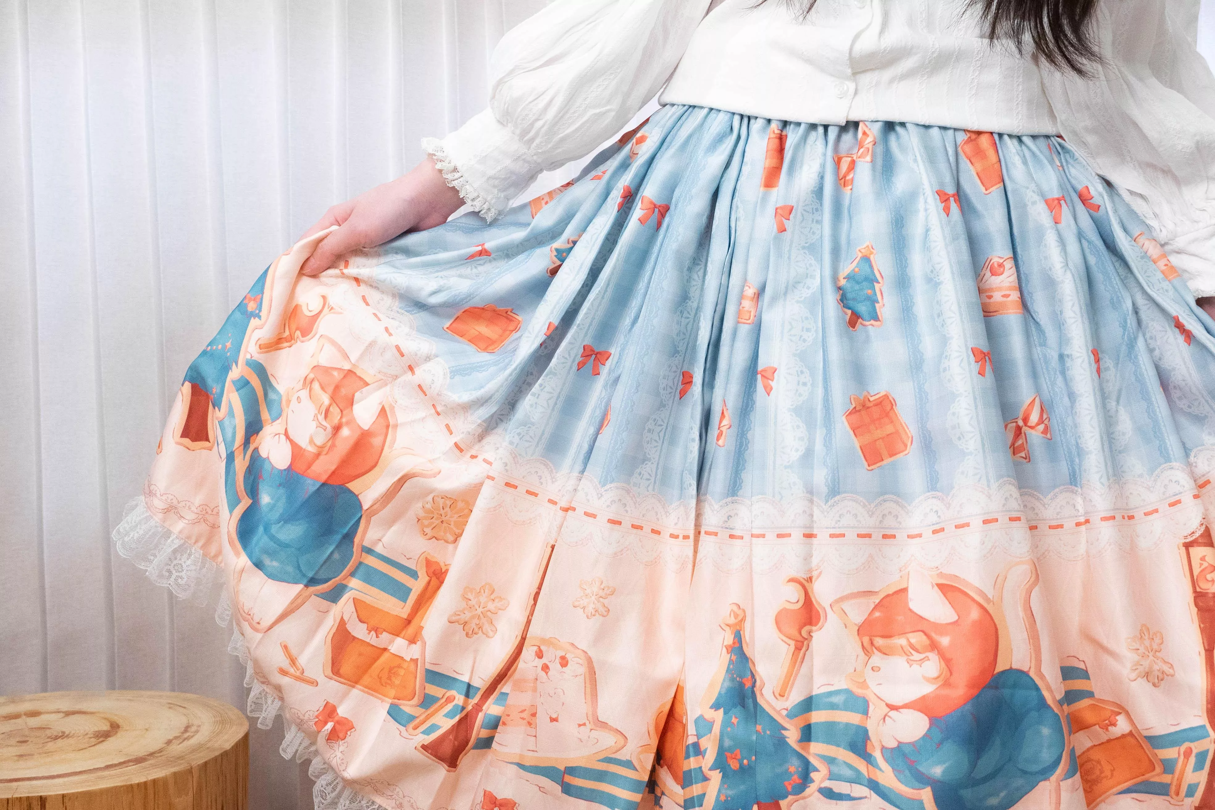每一款半身裙皆由茉晰親自挑選布料製作。