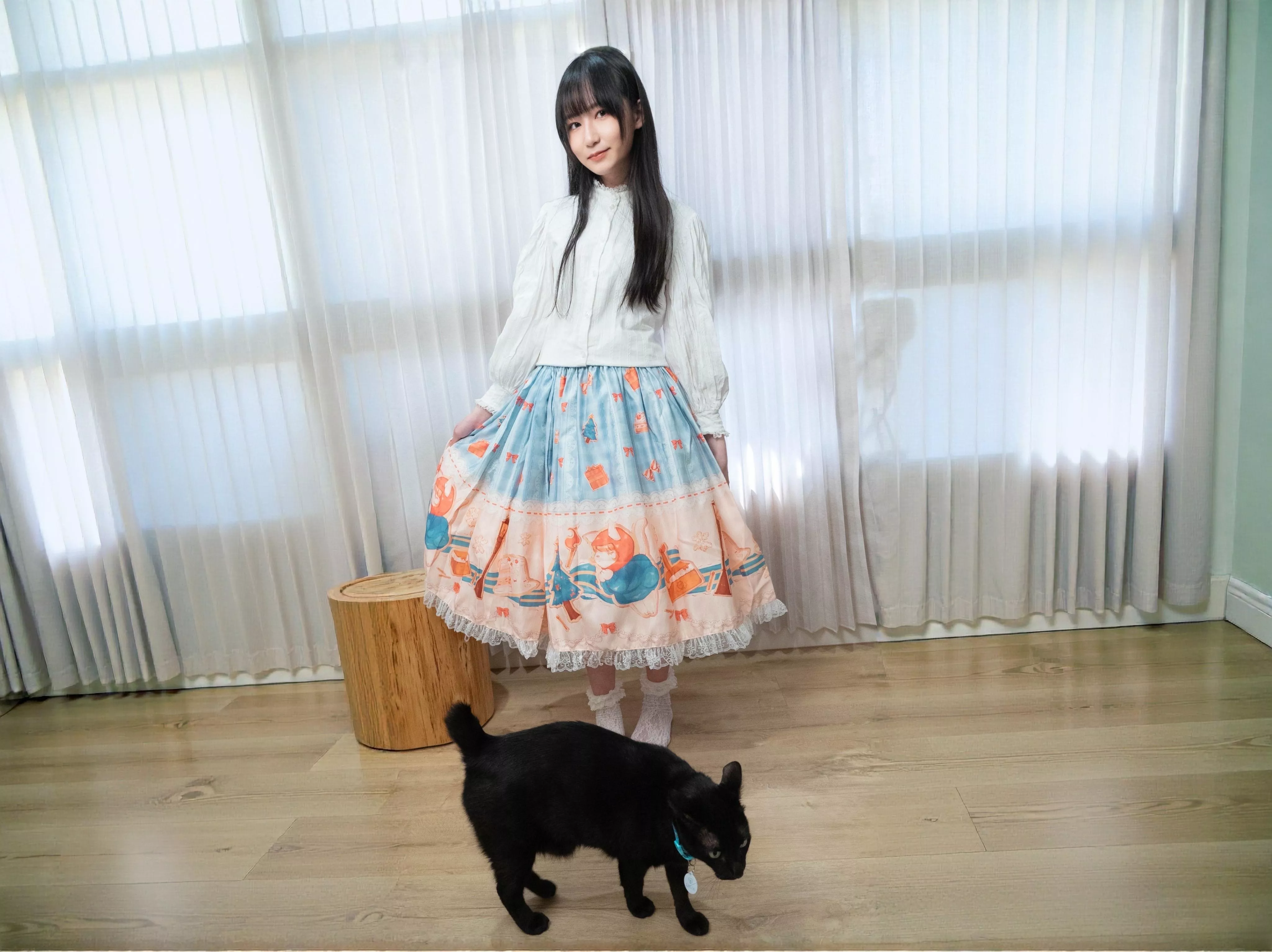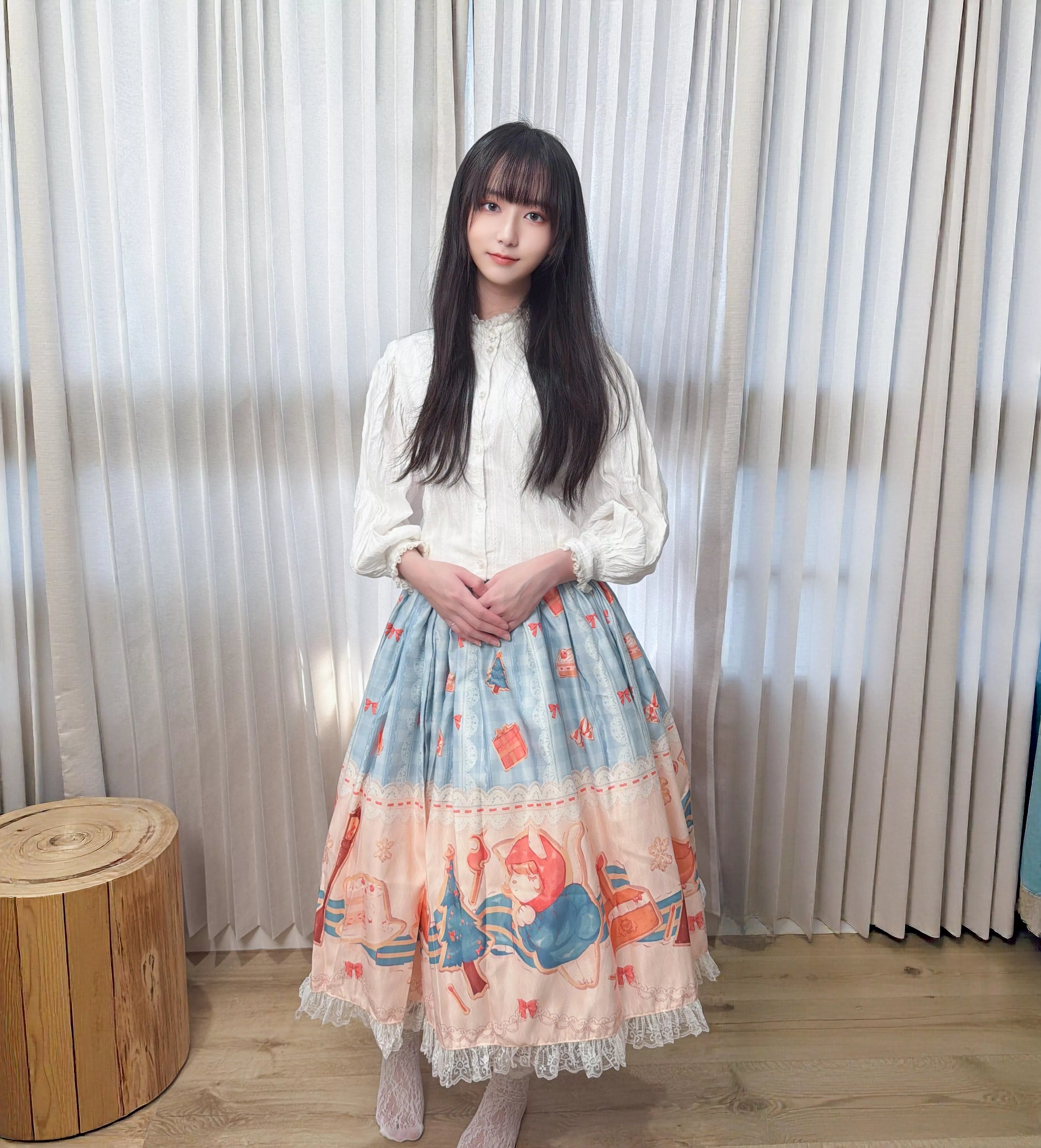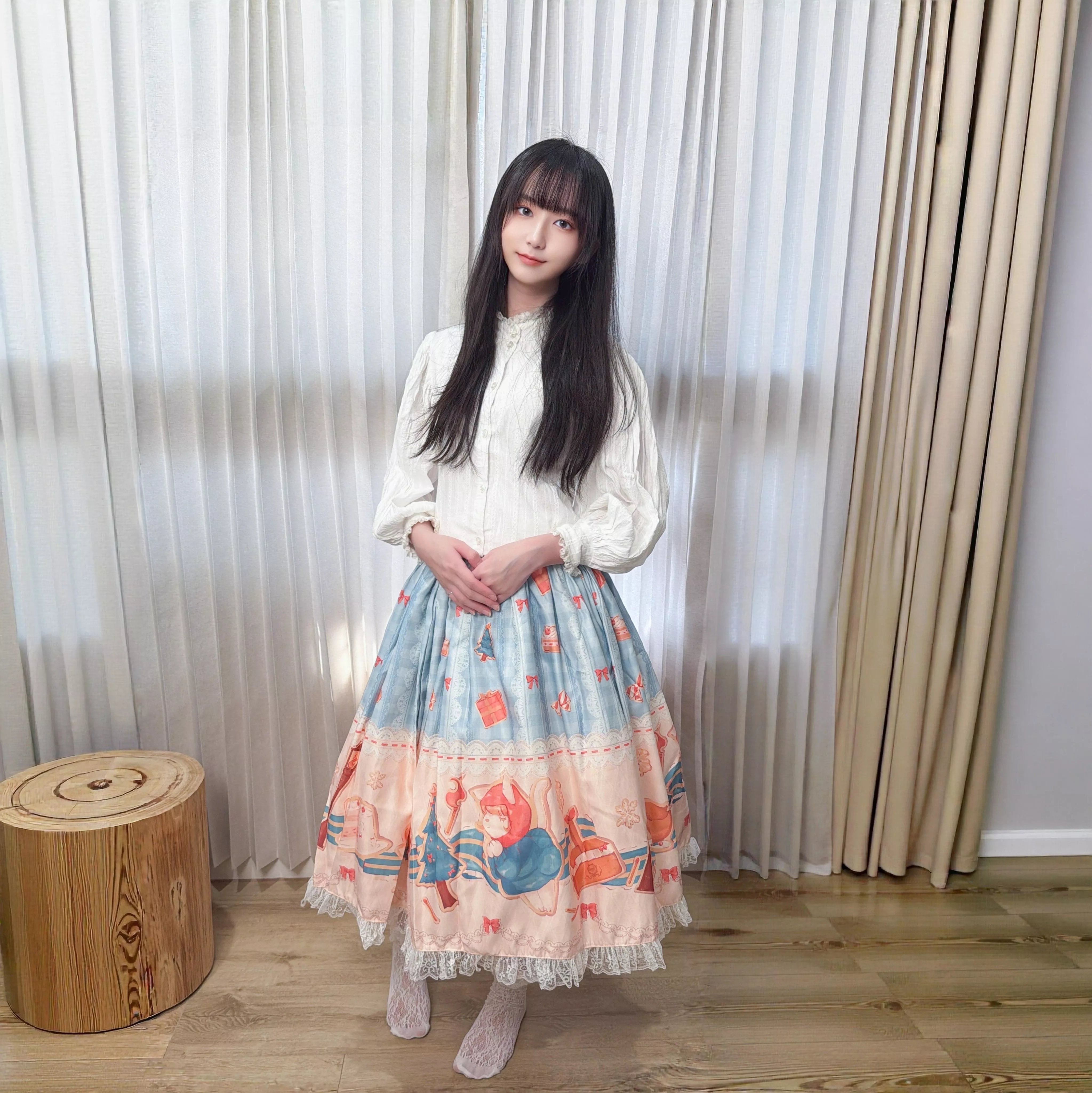 每一款半身裙皆由茉晰親自挑選布料製作。