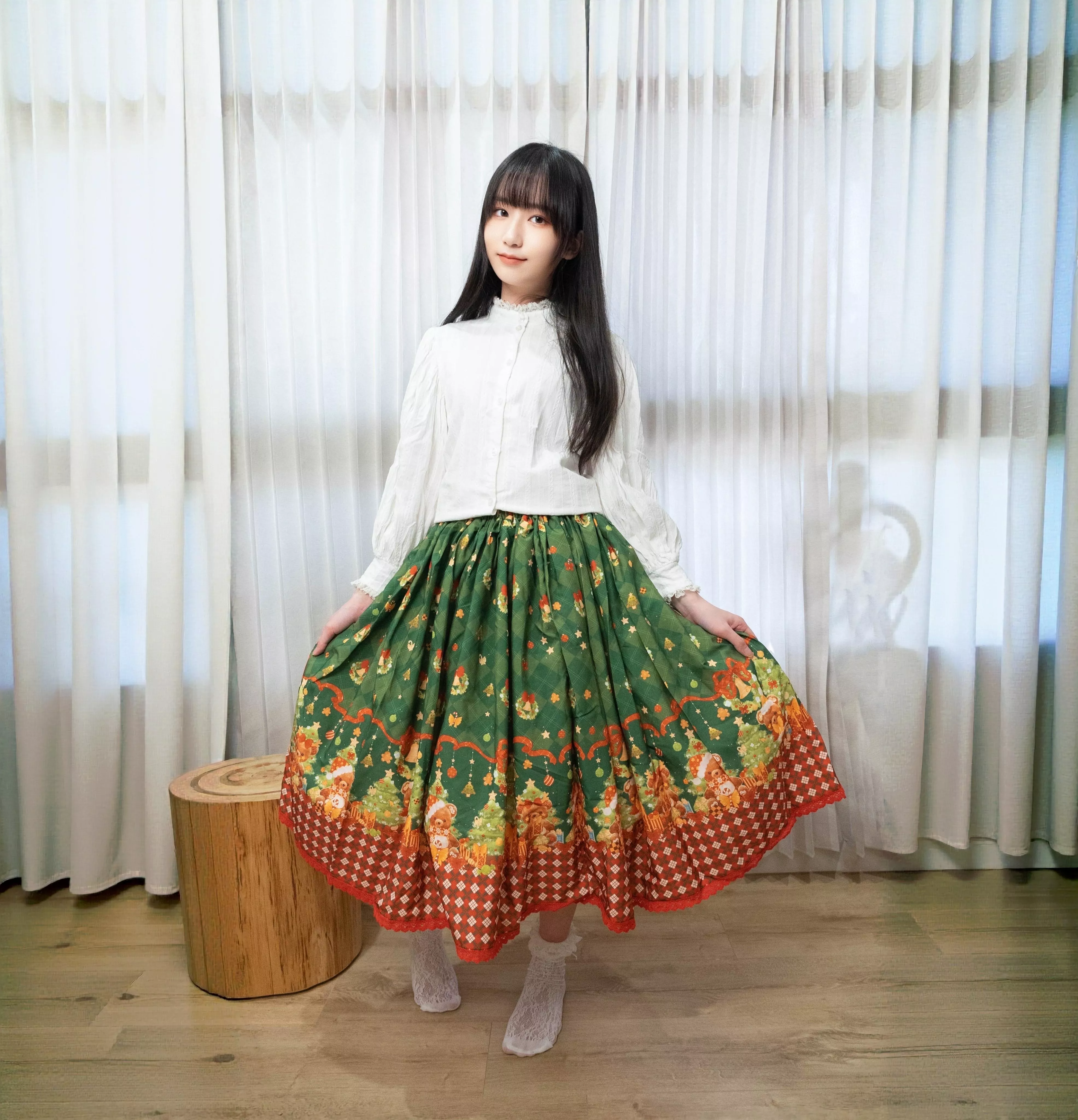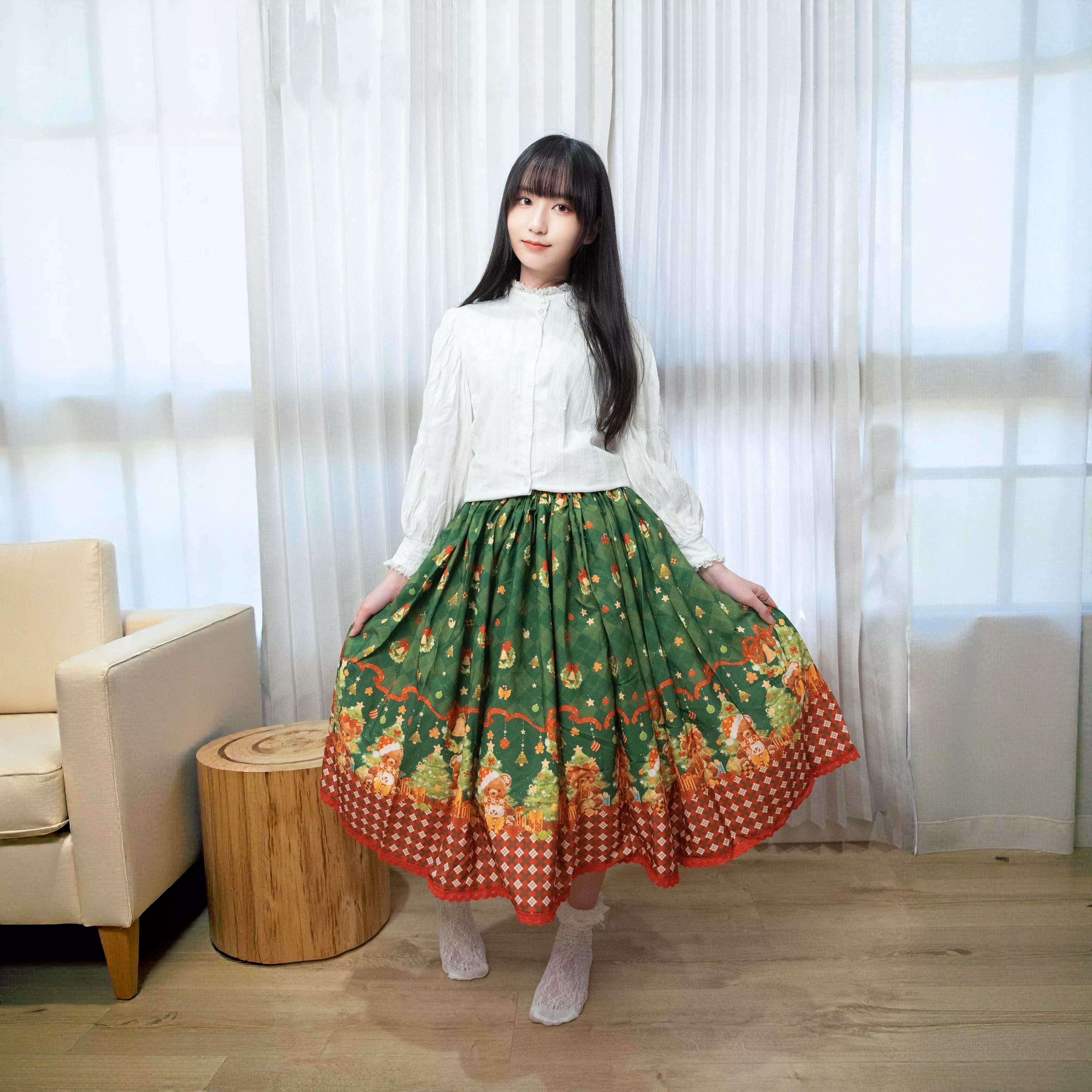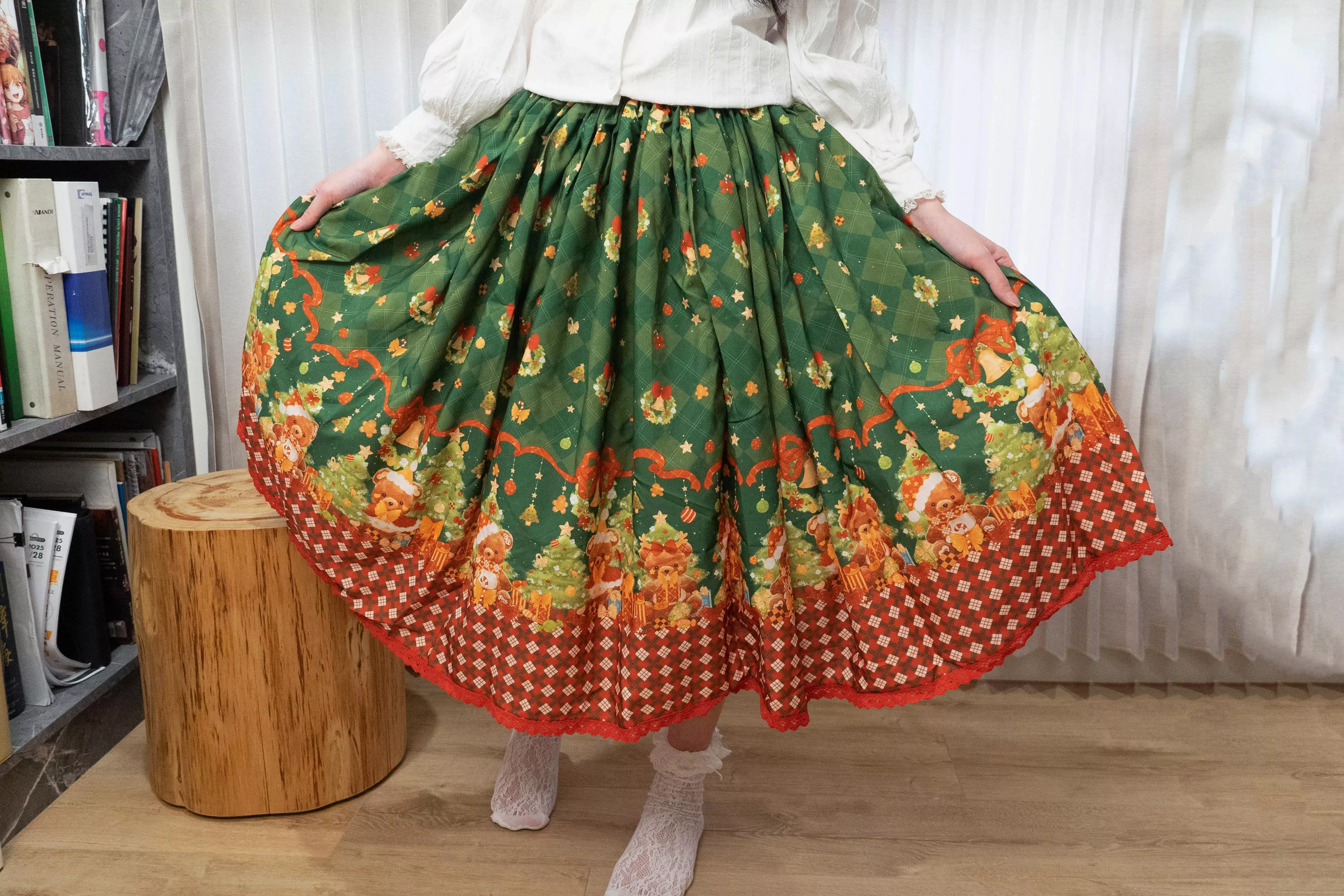 每一款半身裙皆由茉晰親自挑選布料製作。