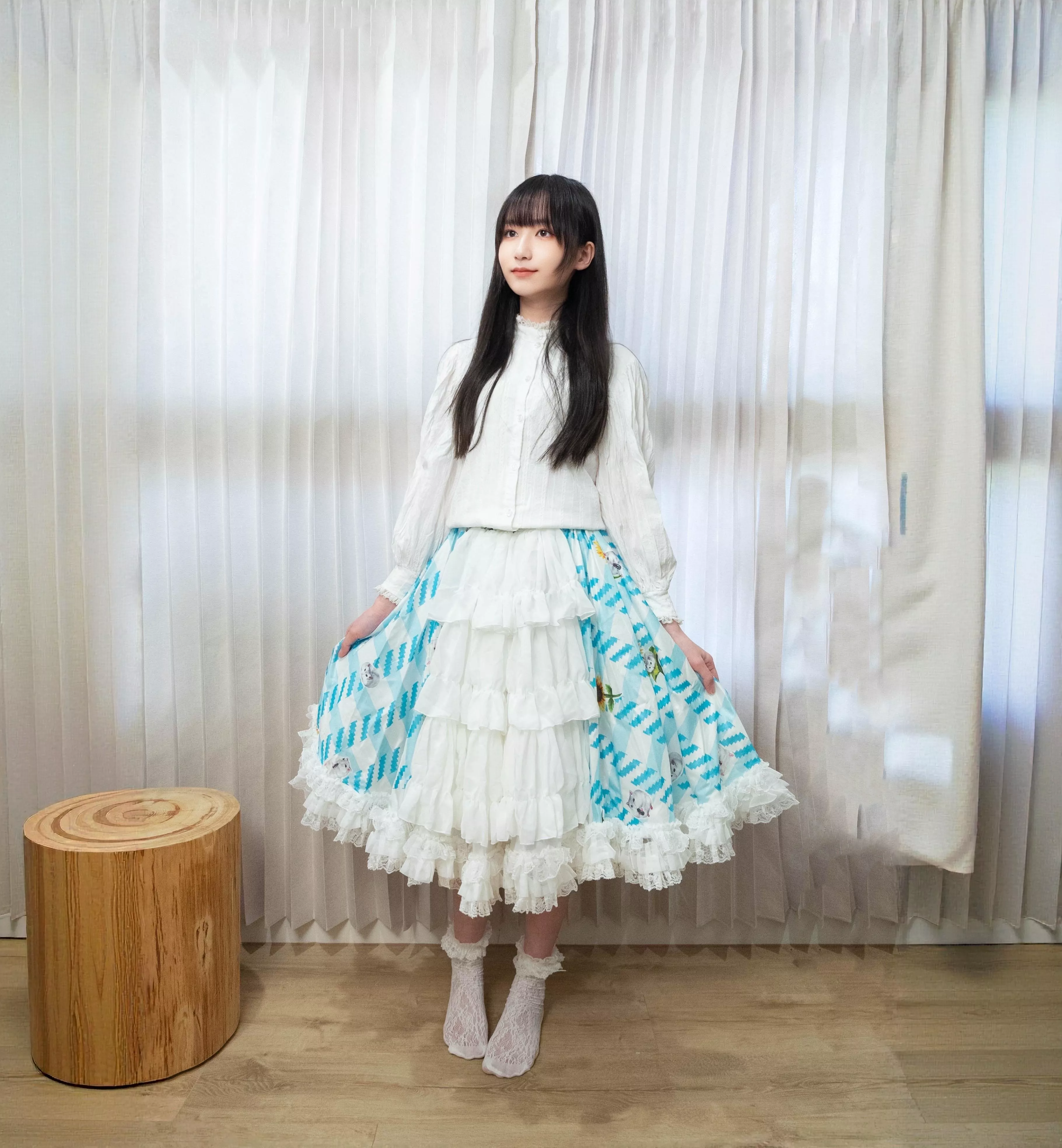 茉晰穿著為M號白色紗