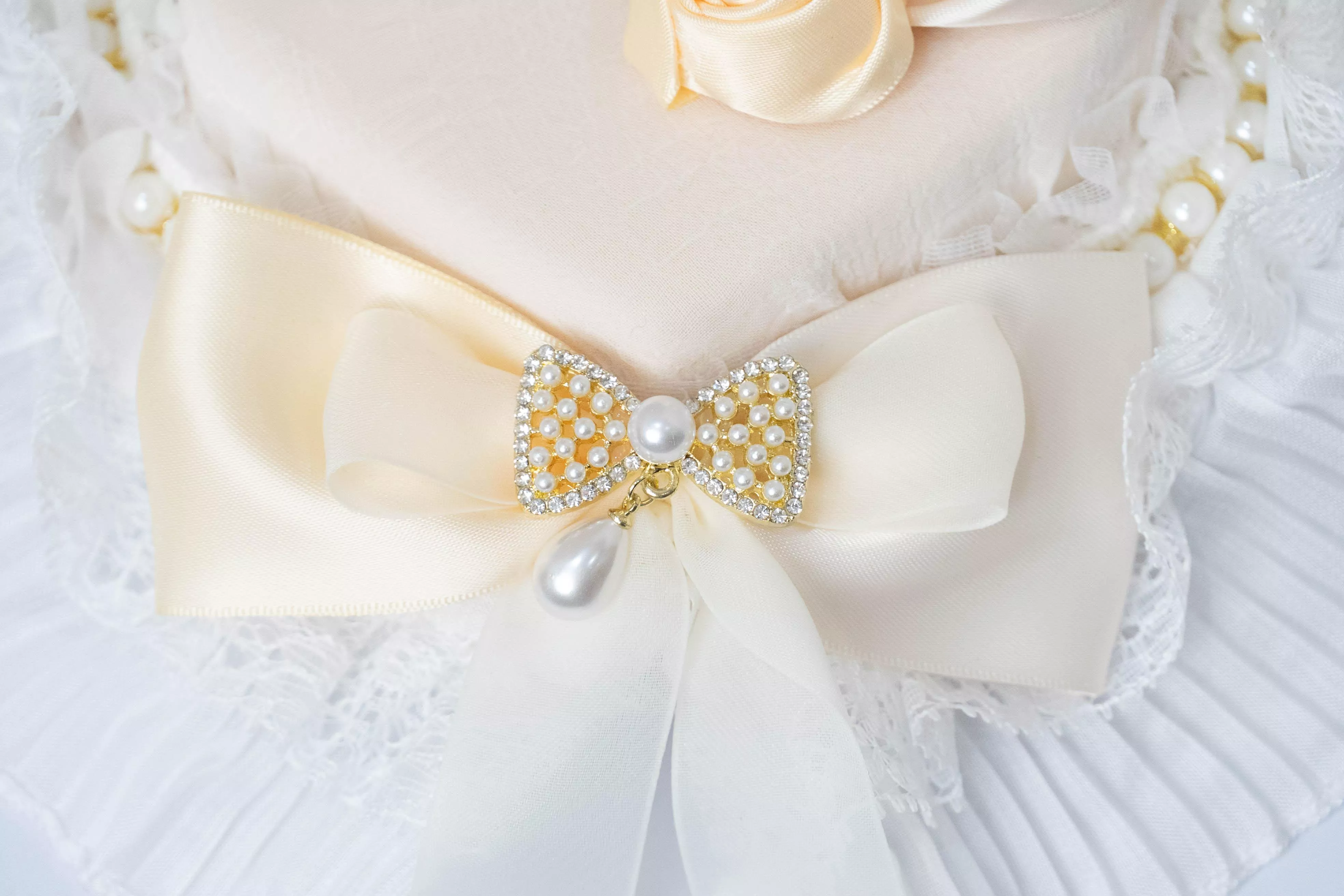 柔和奶油白色調,點綴蝴蝶結與垂墜珍珠吊飾,在甜美之中綻放優雅浪漫。