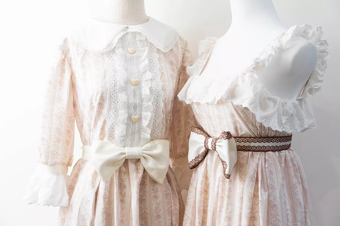 OP蕾絲邊為米色,JSK蕾絲邊為咖啡色