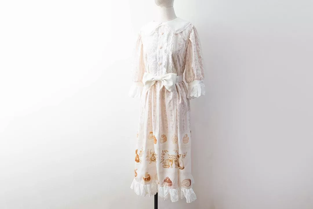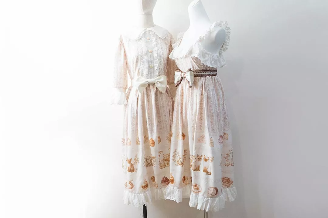 法式奶油貓 OP|茉紡原創印花 Lolita 洋裝