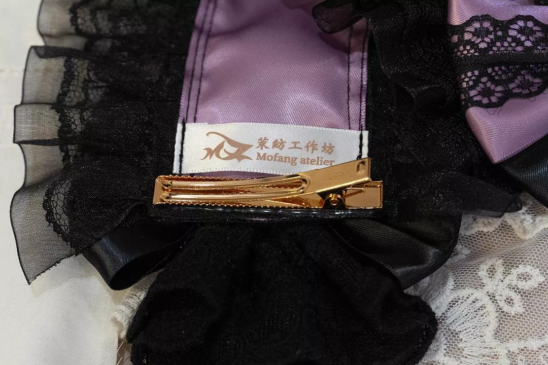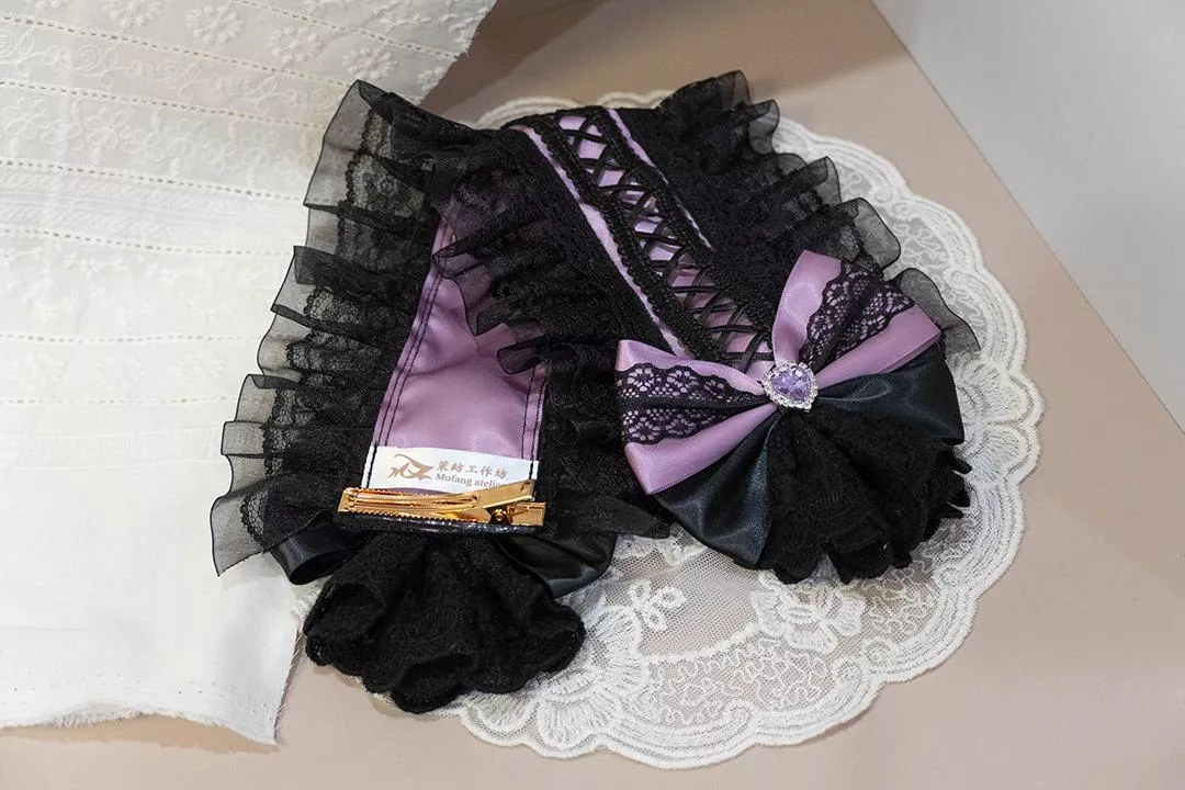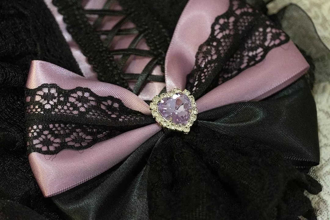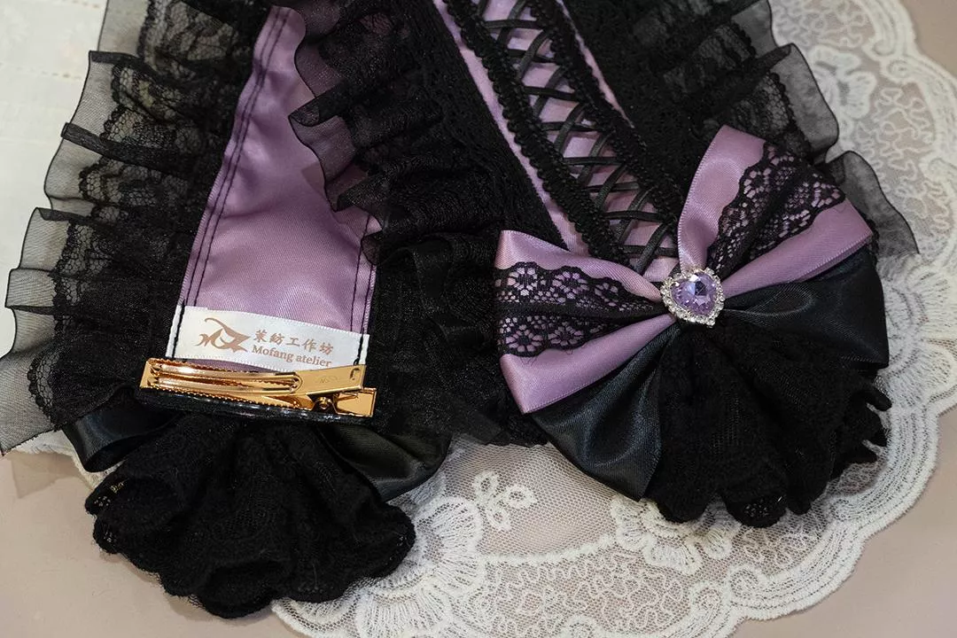 紫黑蕾絲 × 愛心寶石 蝴蝶結雙鴨嘴夾帽飾|茉紡手作