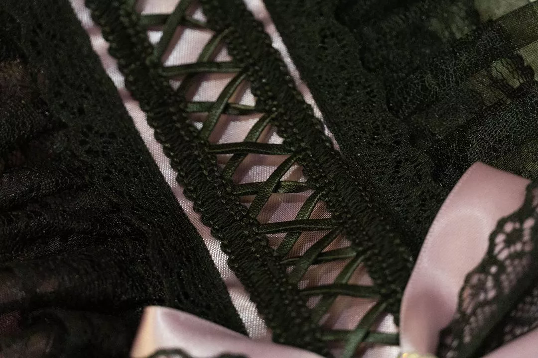 結合立體緞帶編織、層層蕾絲堆疊,與心型寶石為焦點,