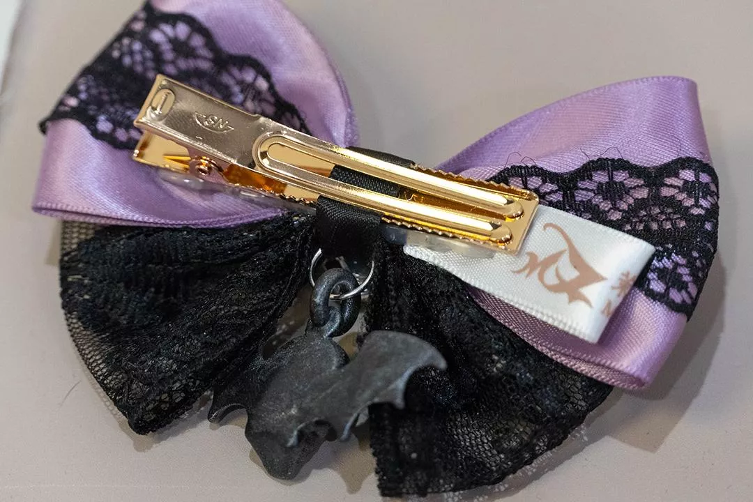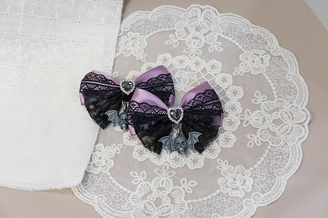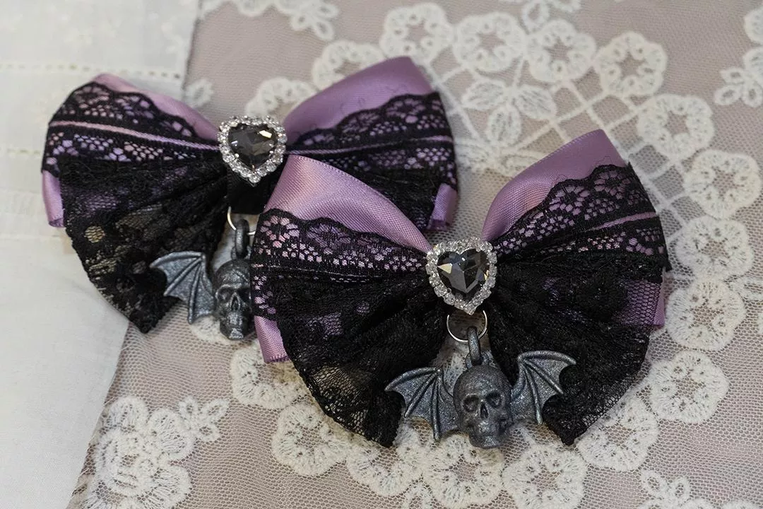 萬聖蝙蝠骷髏 雙蝴蝶結髮夾(紫)|茉紡 3D 列印飾品 Gothic 系列