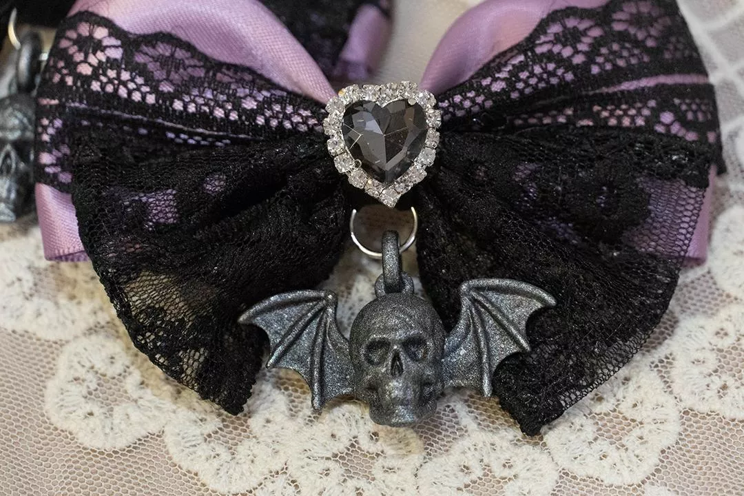 雙層蝴蝶結 × 立體蝙蝠骷髏吊飾,