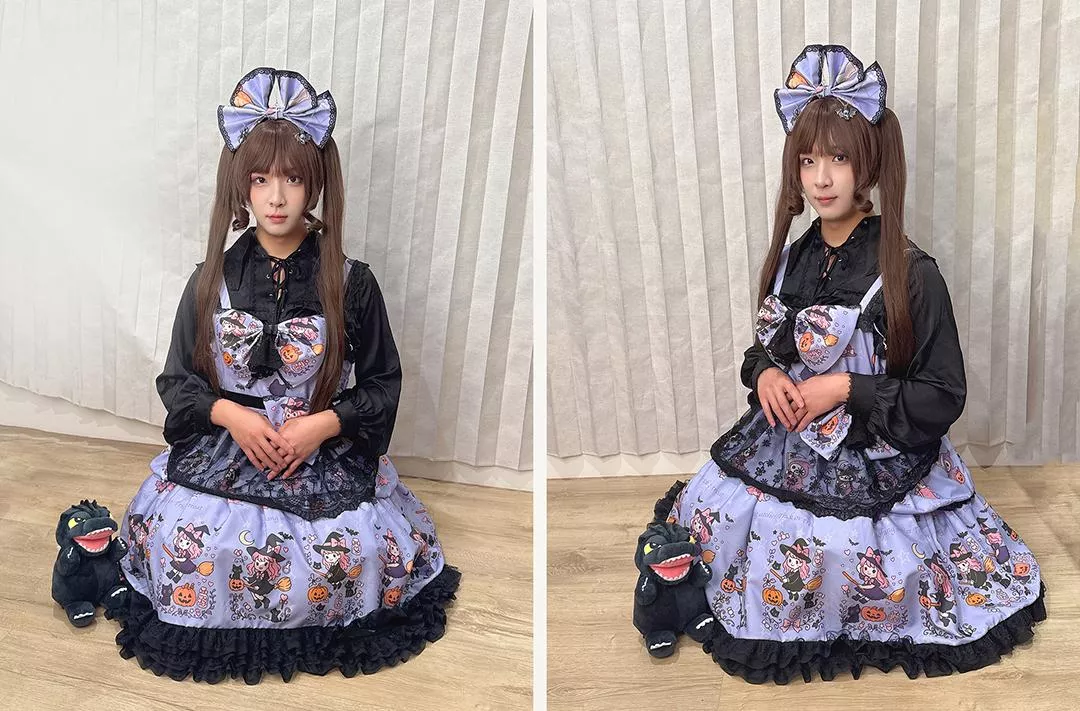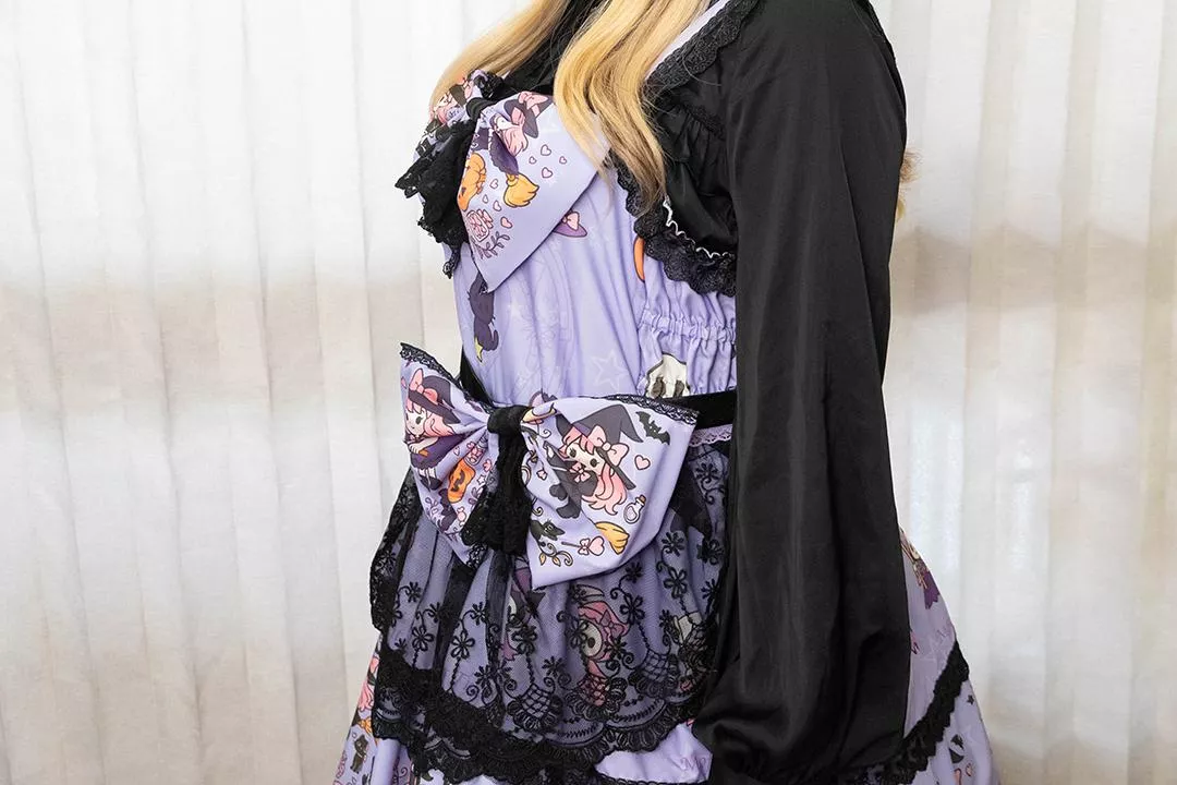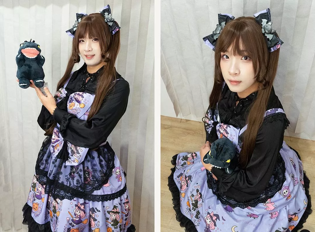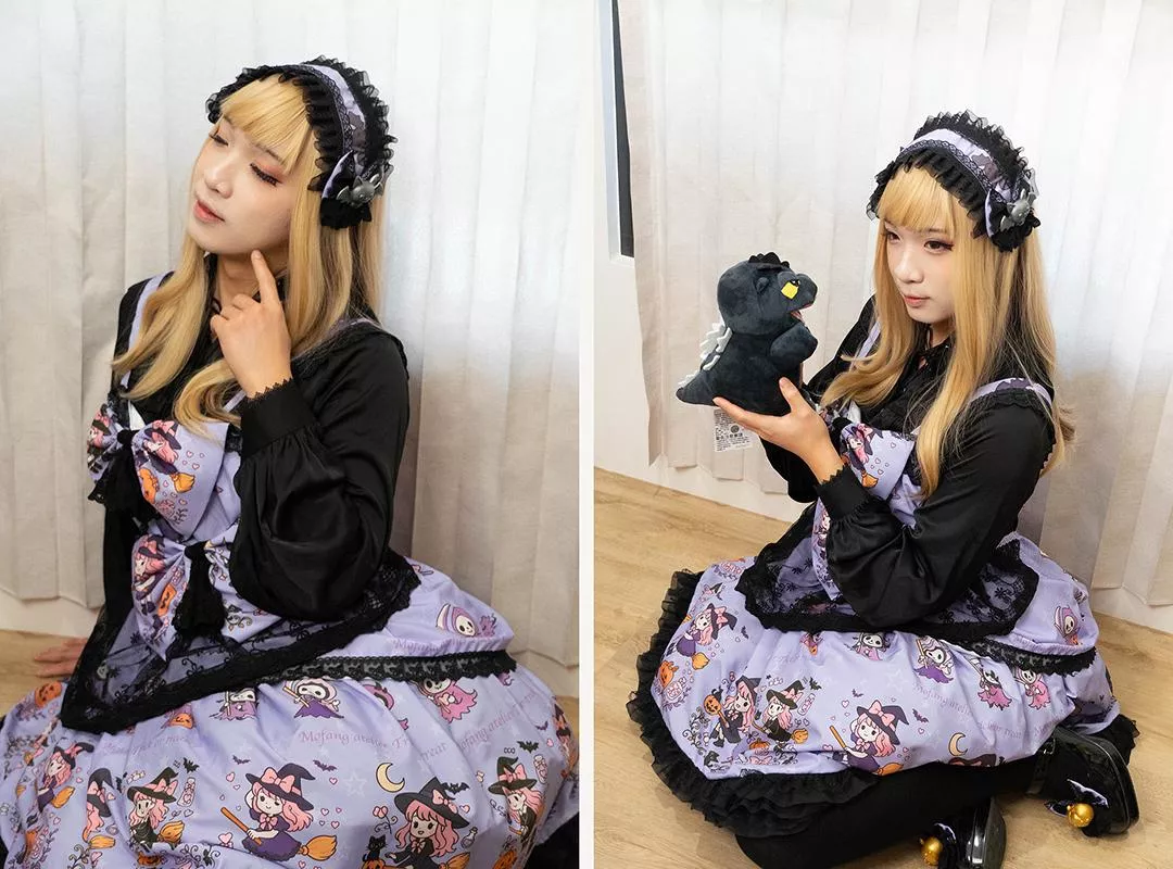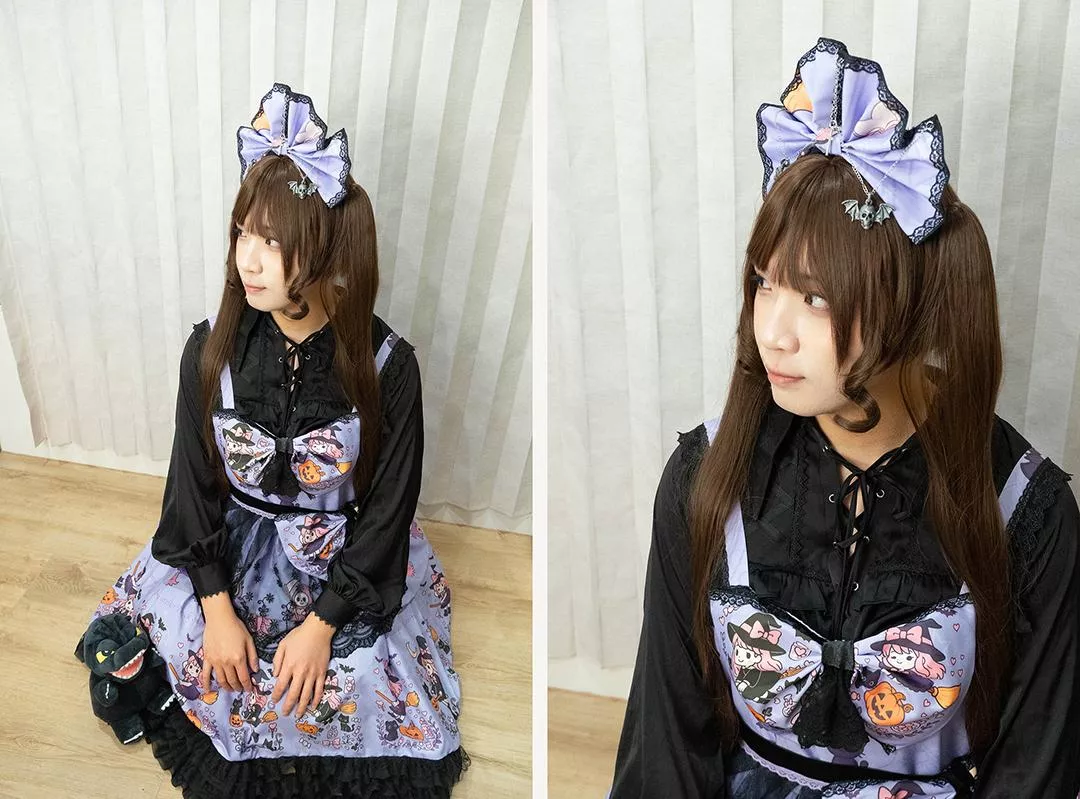 整體採用輕盈卻完全不透明的薄款布料,搭配茉紡獨家原創印花,展現夢幻紫 × 黑的配色,營造可愛又優雅的氣質。