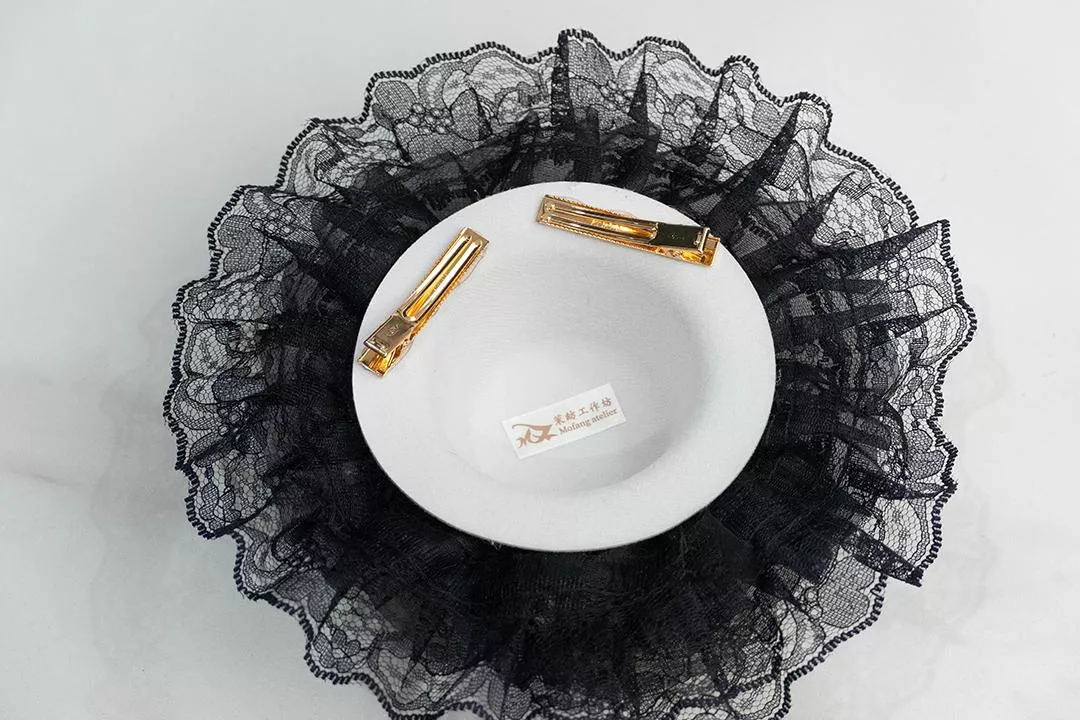 不易變形輕盈設計,小蕾絲裙擺邊點綴,想夾哪裡就夾哪裡:非別針的結構,不易破壞服裝更能延長布料壽命。
