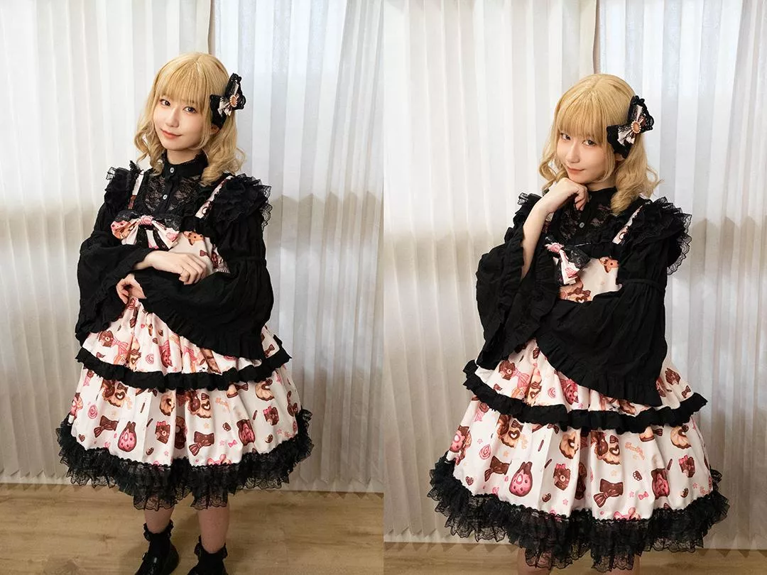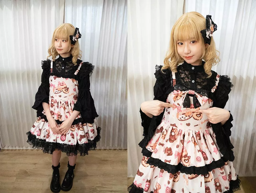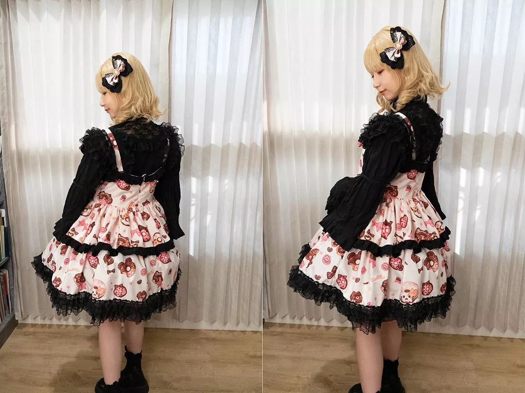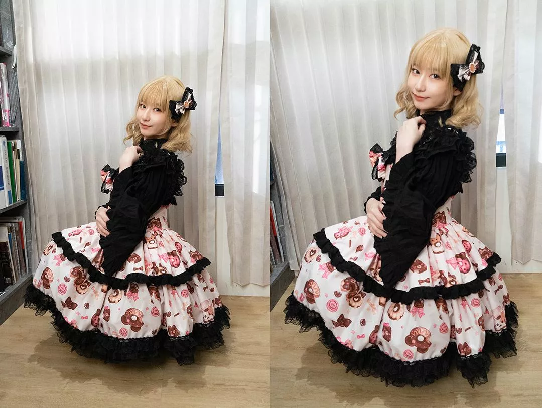 裙身設計著重於澎度與層次堆疊,透過蕾絲與細節裝飾,營造出輕盈卻不失份量感的經典蘿莉塔輪廓。