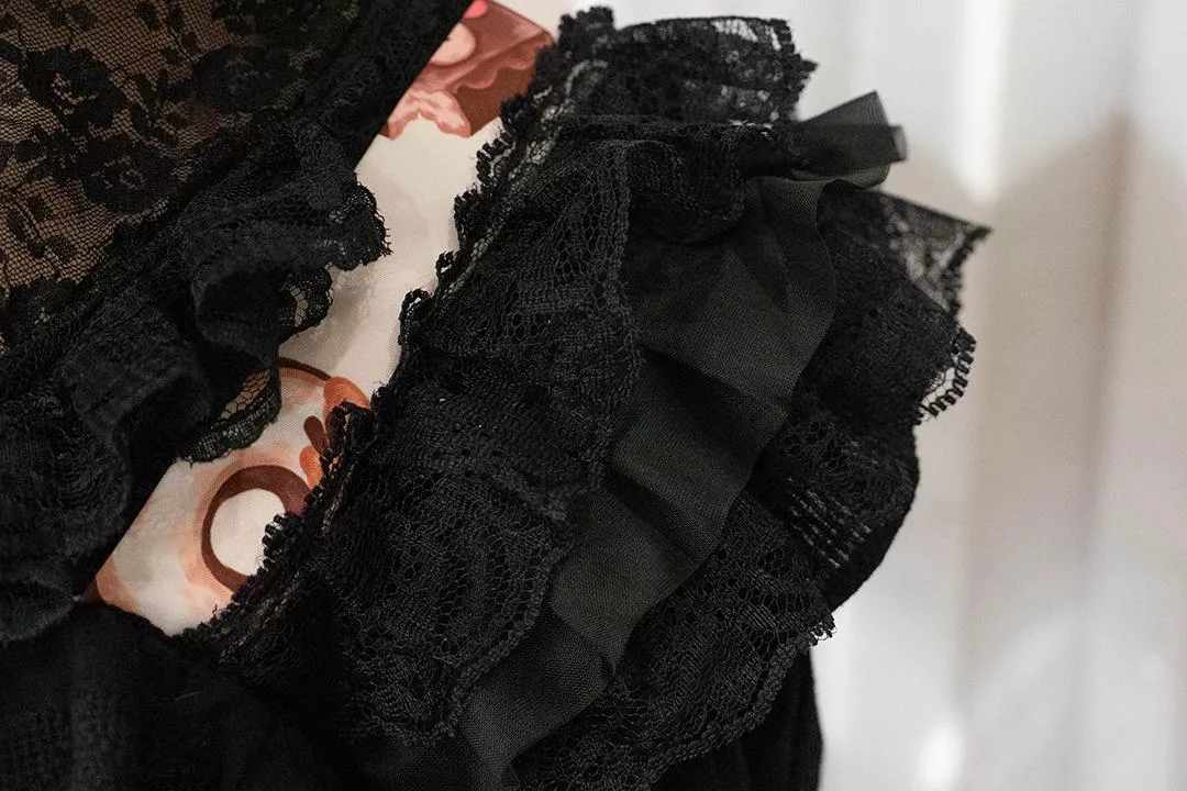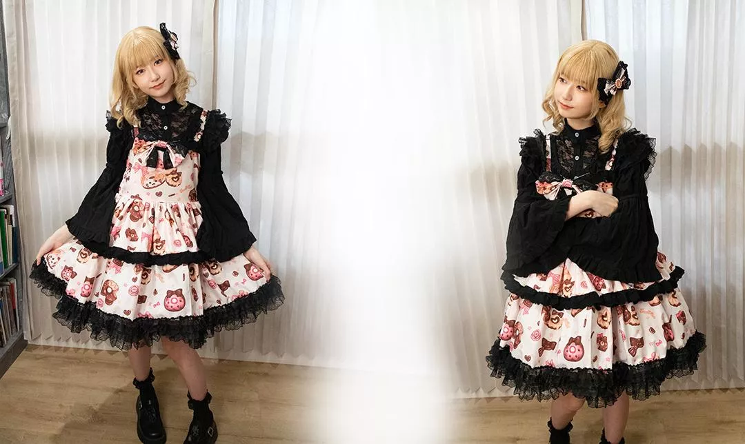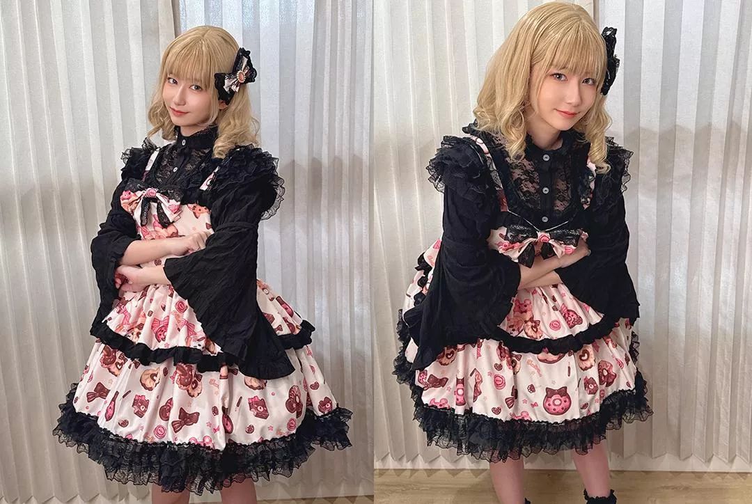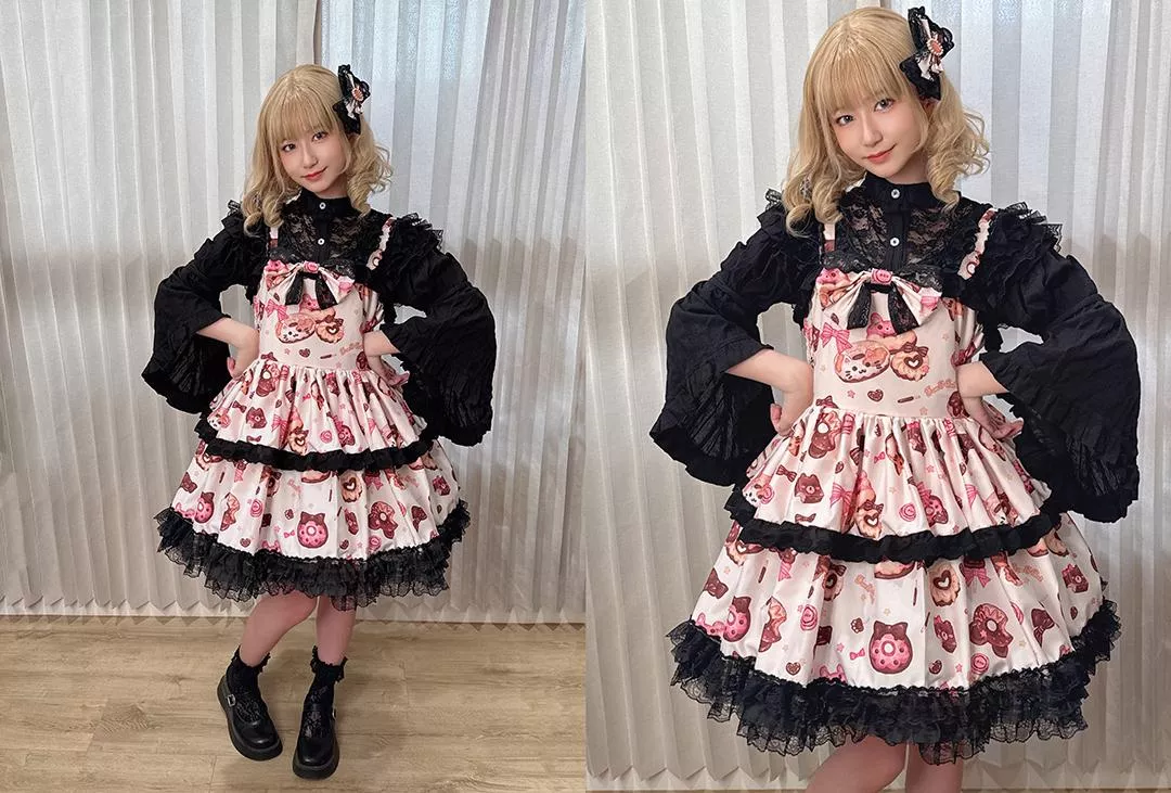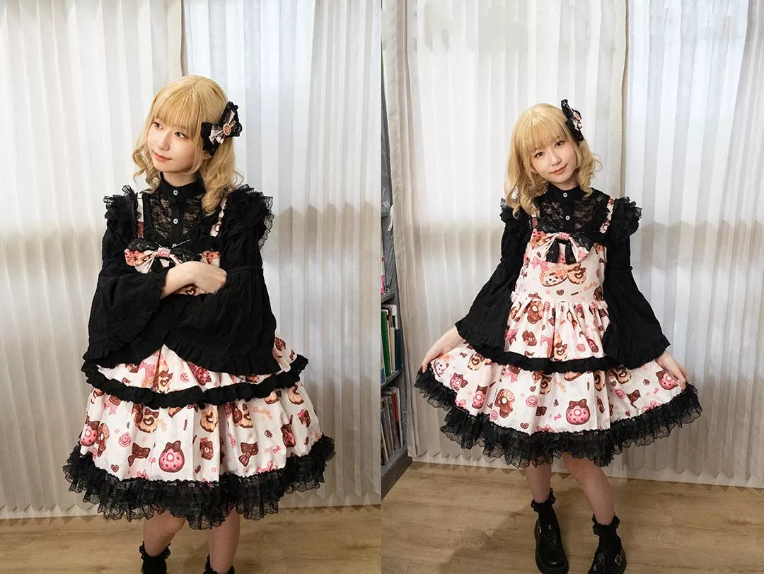 裙身設計著重於澎度與層次堆疊,透過蕾絲與細節裝飾,營造出輕盈卻不失份量感的經典蘿莉塔輪廓。