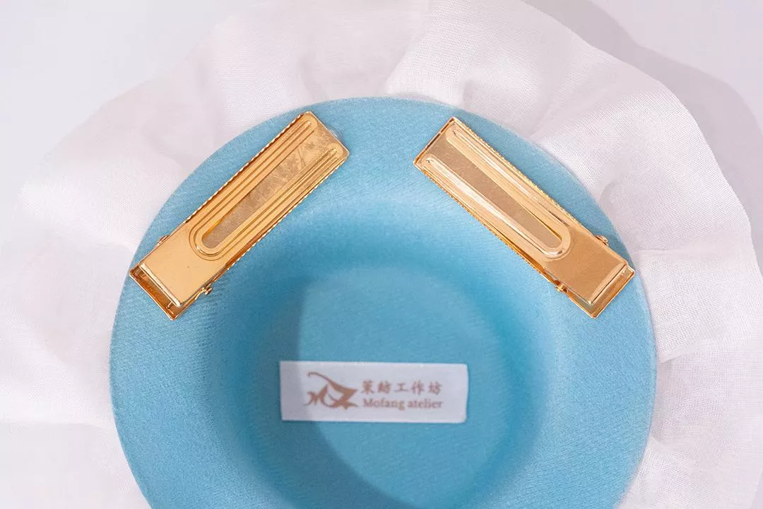 霧藍白詩 小禮帽髮夾|茉紡 手作小禮帽
