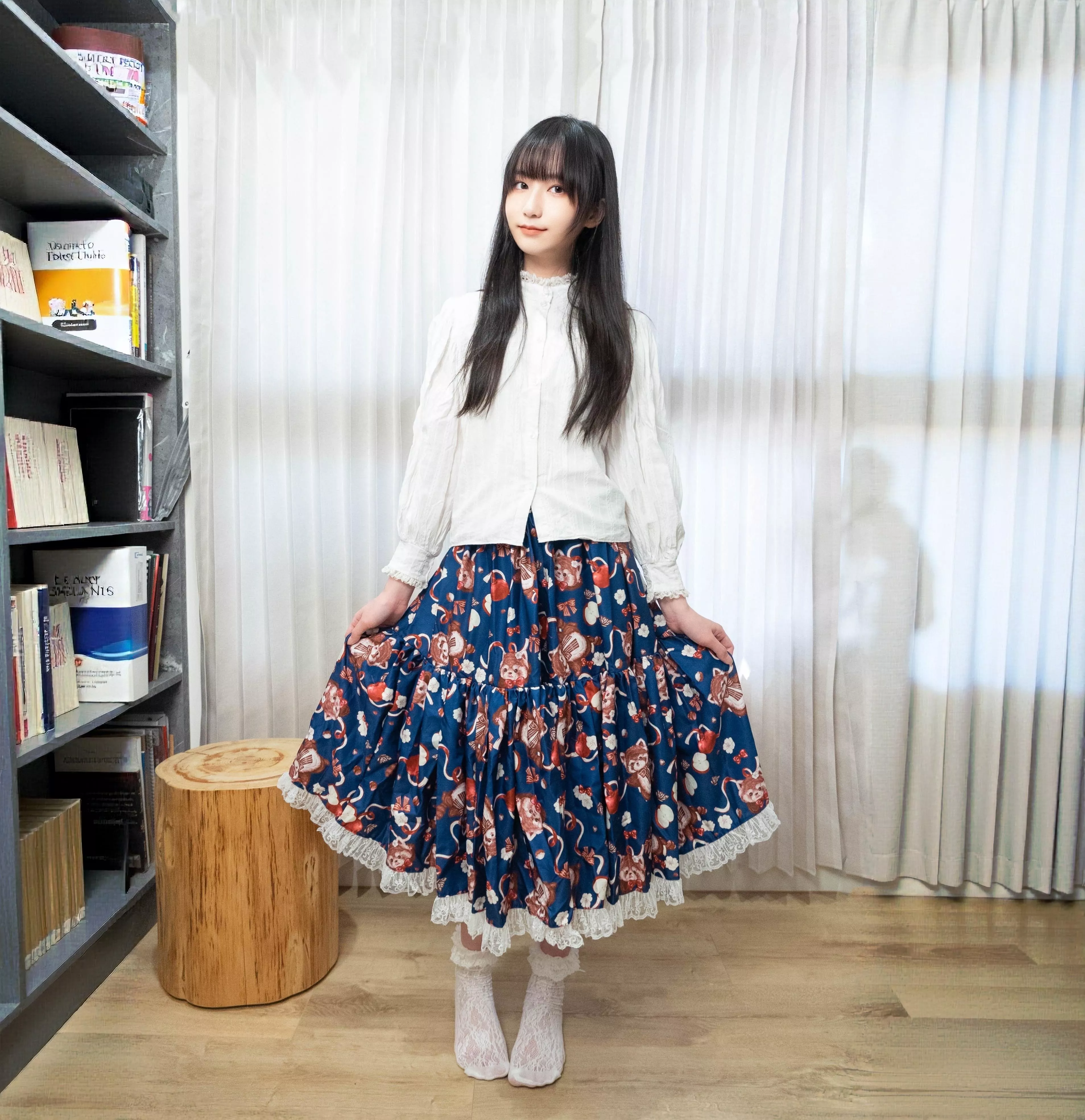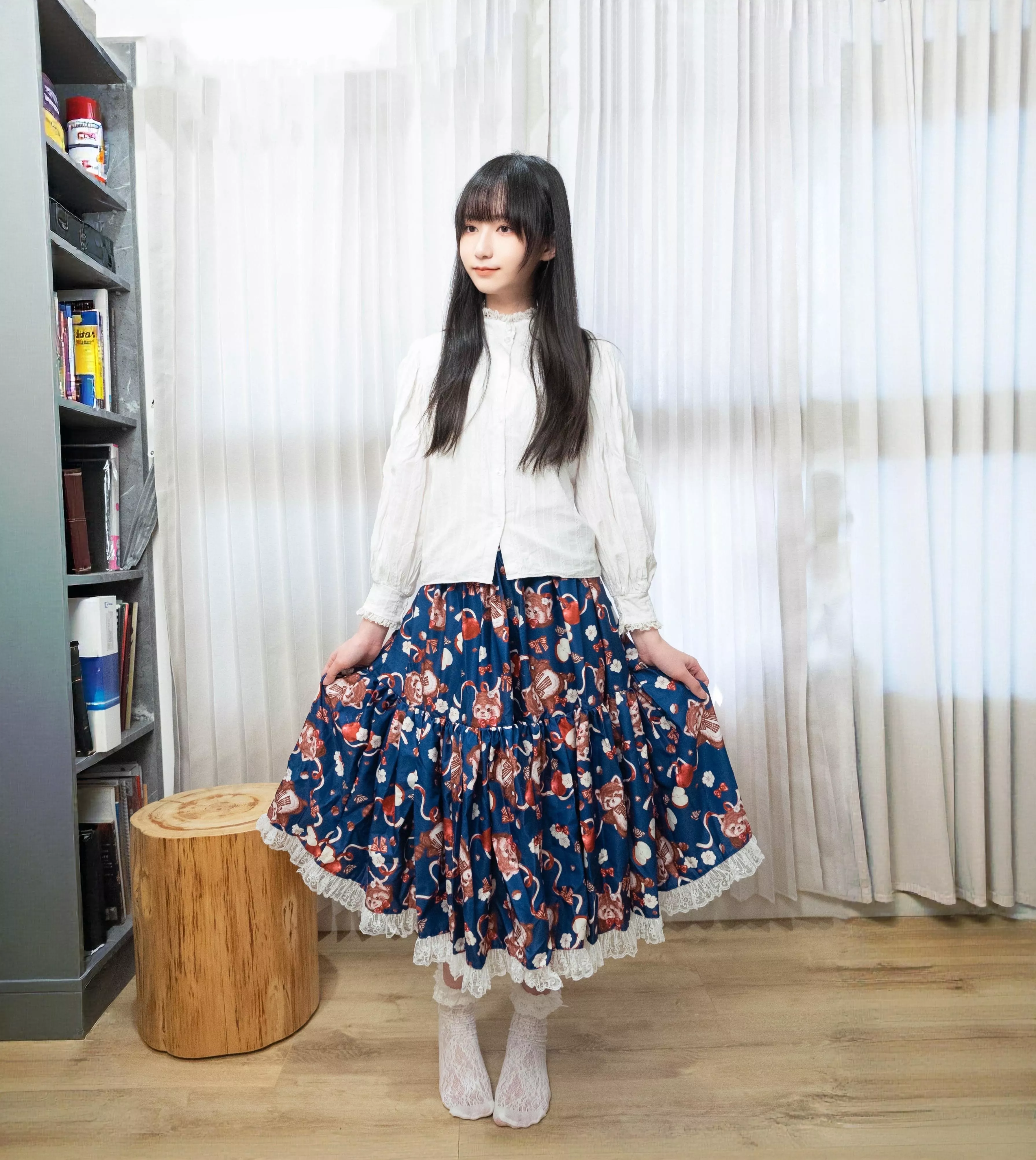 每一款半身裙皆由茉晰親自挑選布料製作。