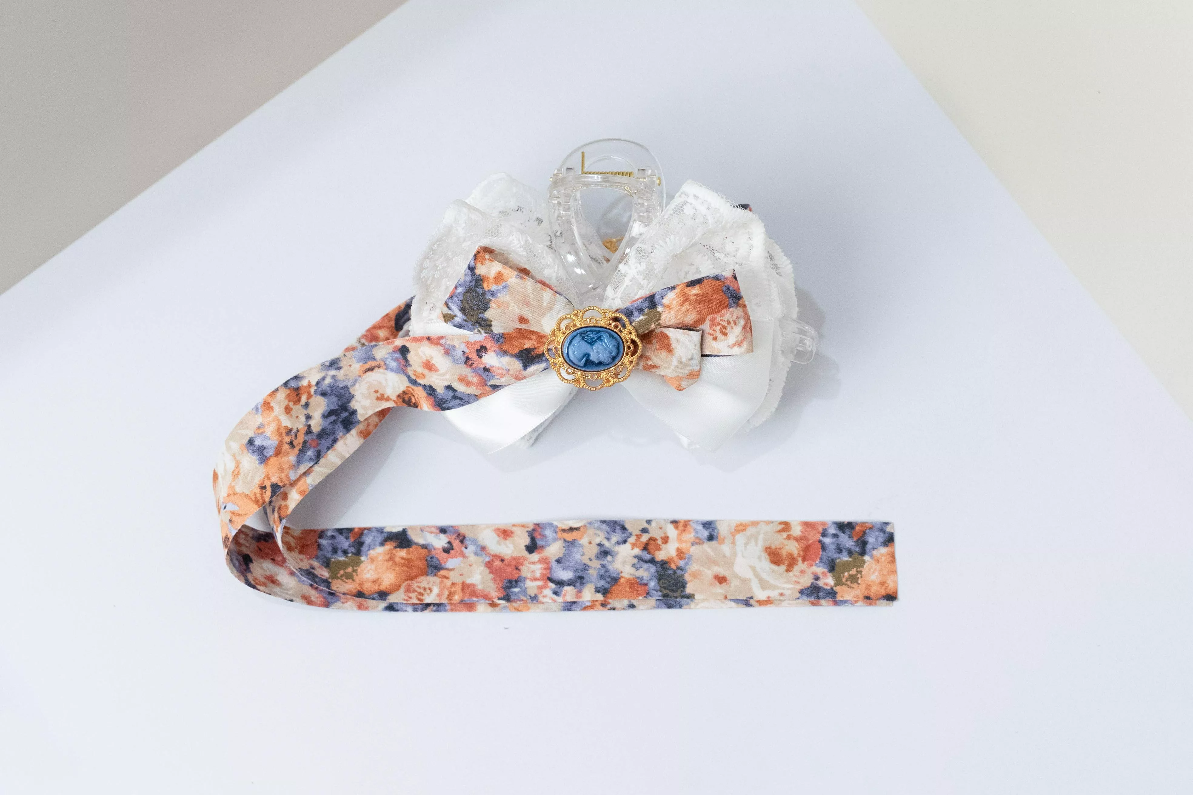 香語花影(靛藍)|茉紡 手作 飄帶鯊魚夾