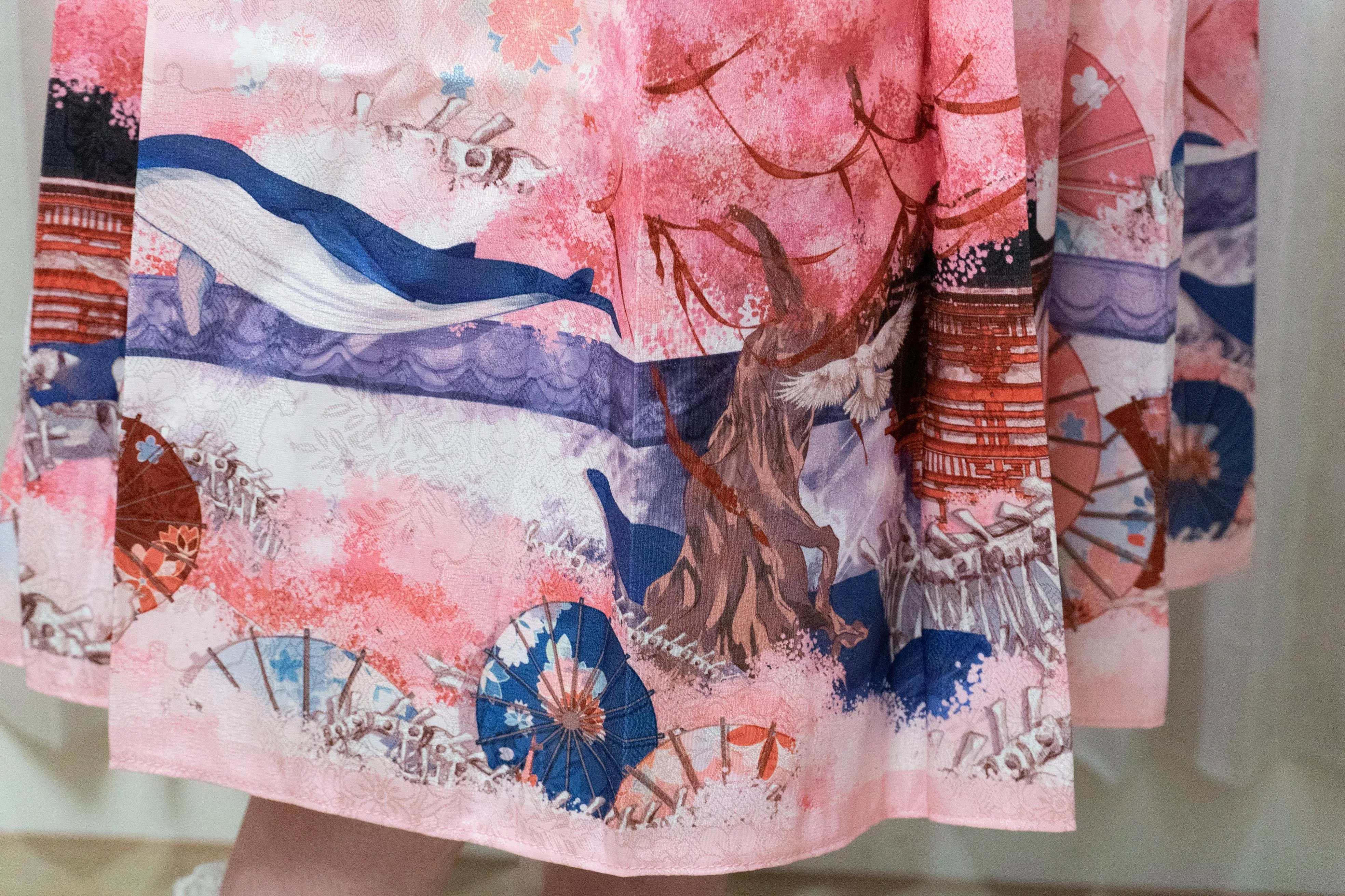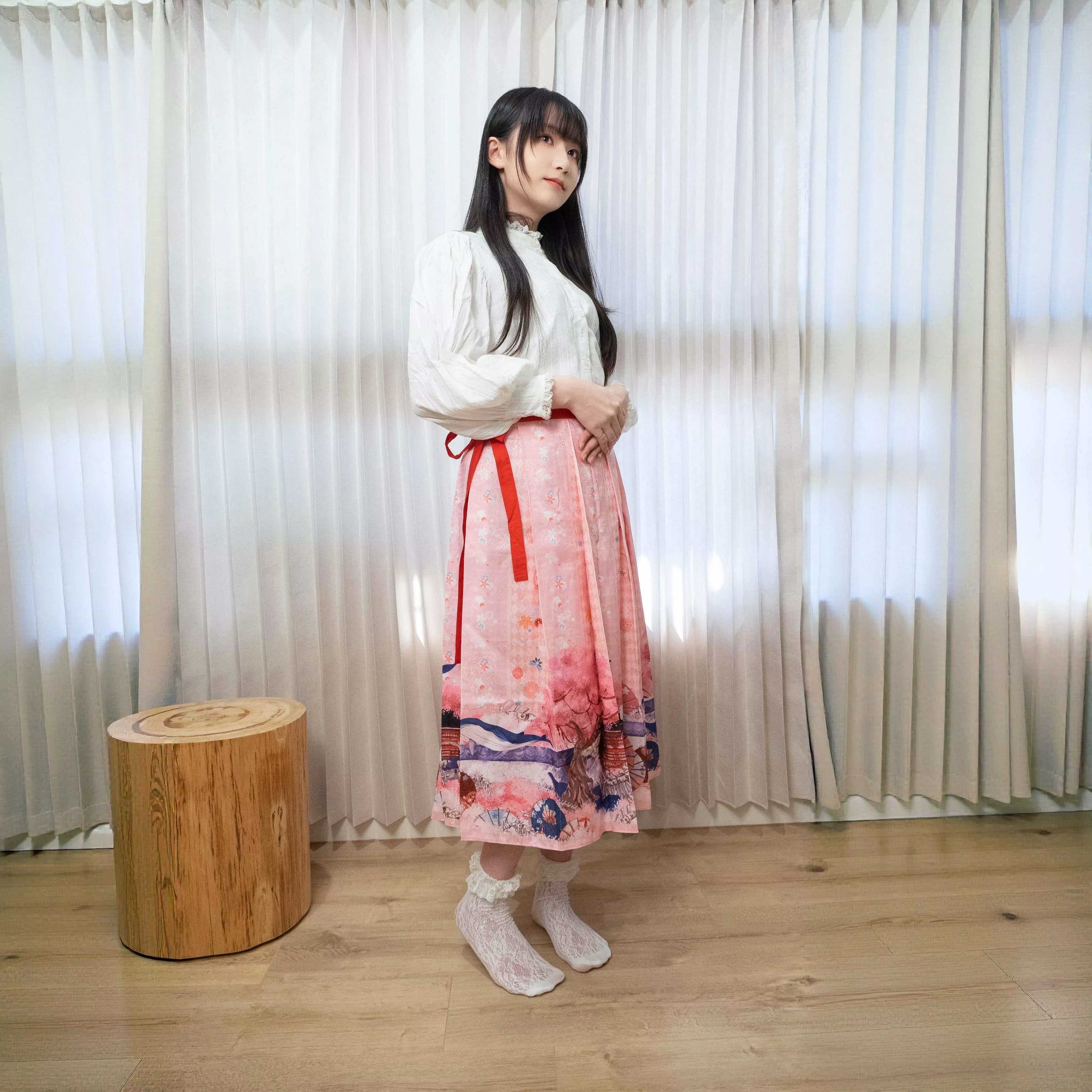 《百摺鯨魚櫻》為茉紡工作坊推出的一片式半身百褶裙,屬單件製作商品。本款裙裝選用茉晰精選布料製作,布料來源具不確定性,是否能再次取得需視廠商供應狀況而定,因此本商品售完即止,不列入固定再販項目。