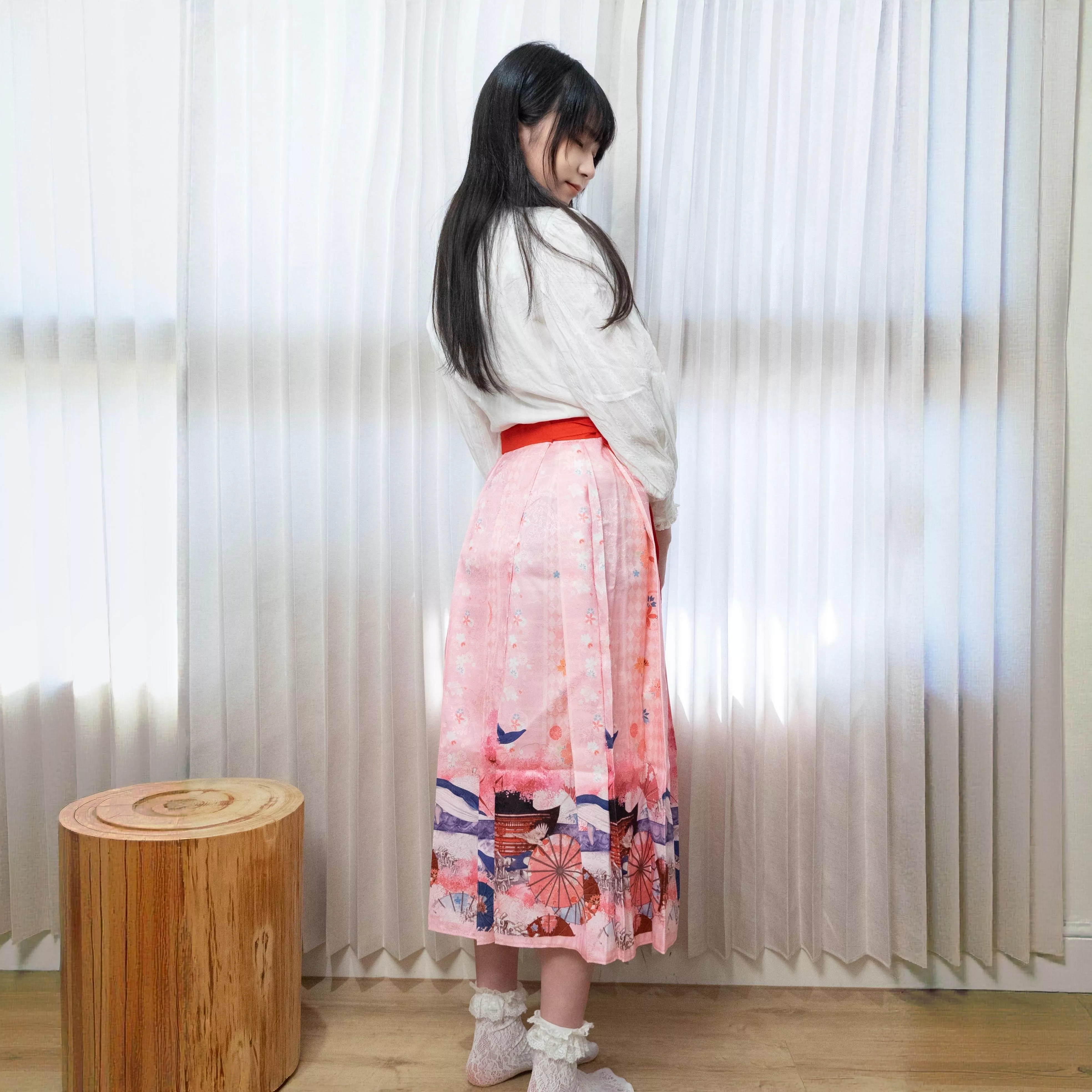 百摺鯨魚櫻-粉|茉紡手作 一片式半身裙