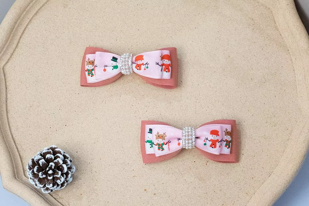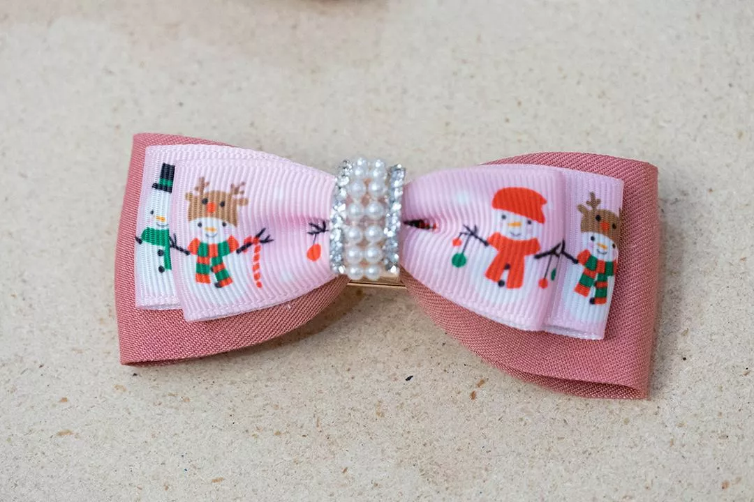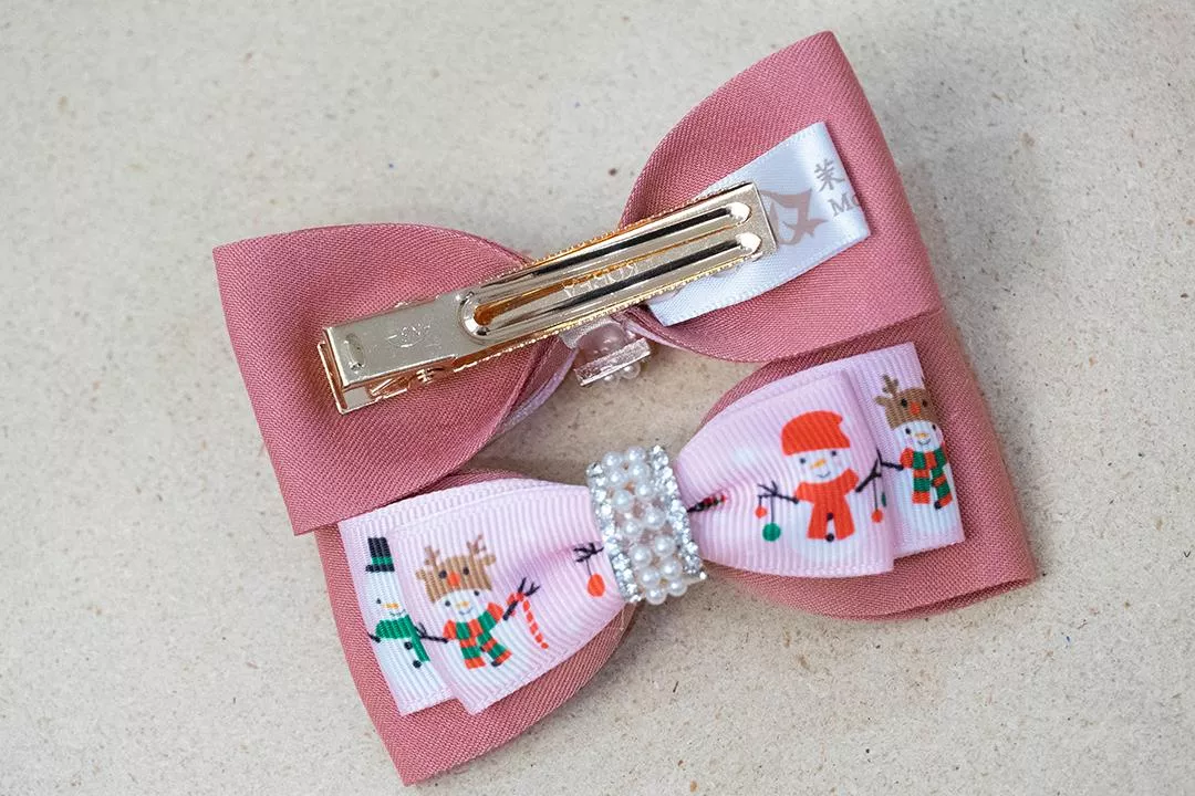 可愛雪人圖案和粉紅溫暖色調雙層蝴蝶結