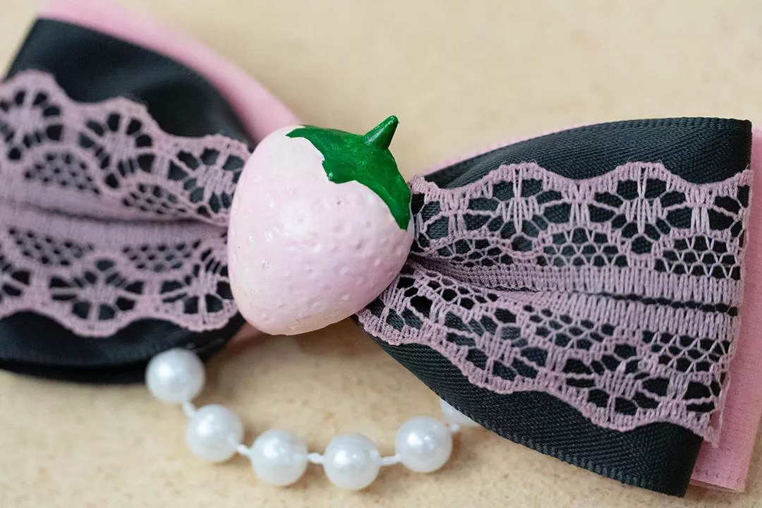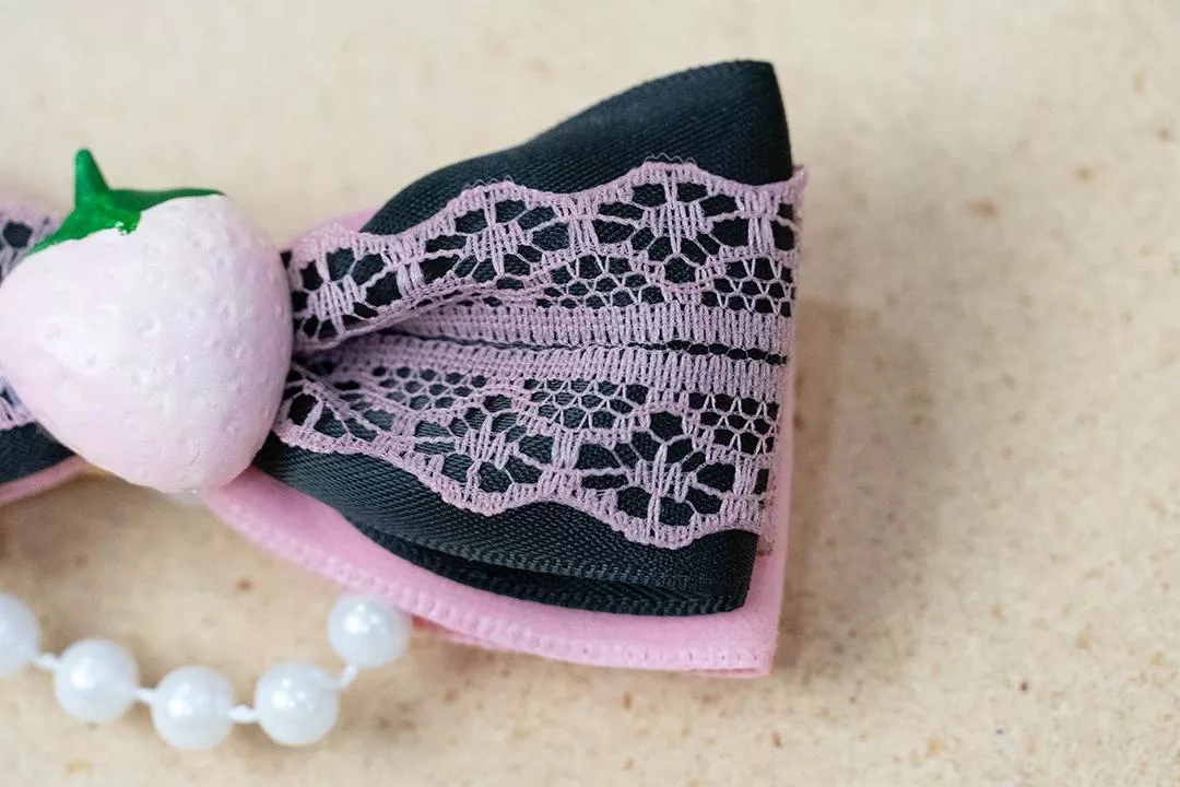 黑緞和粉色蝴蝶結讓整體不會太甜膩,