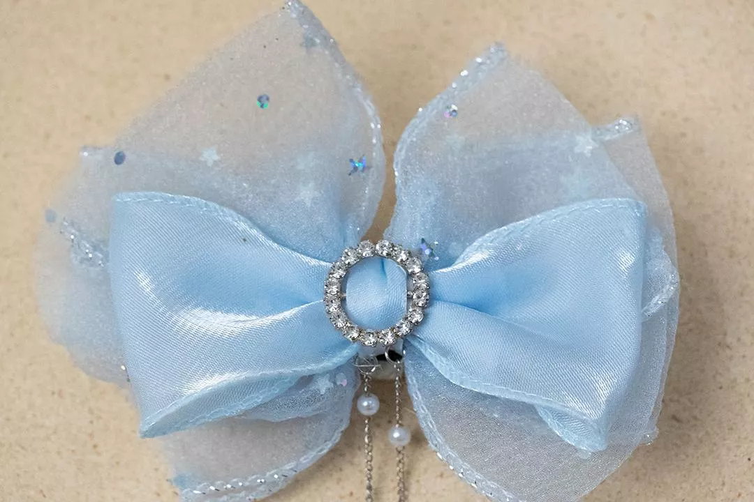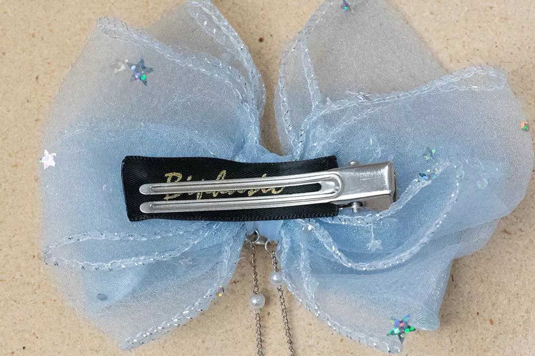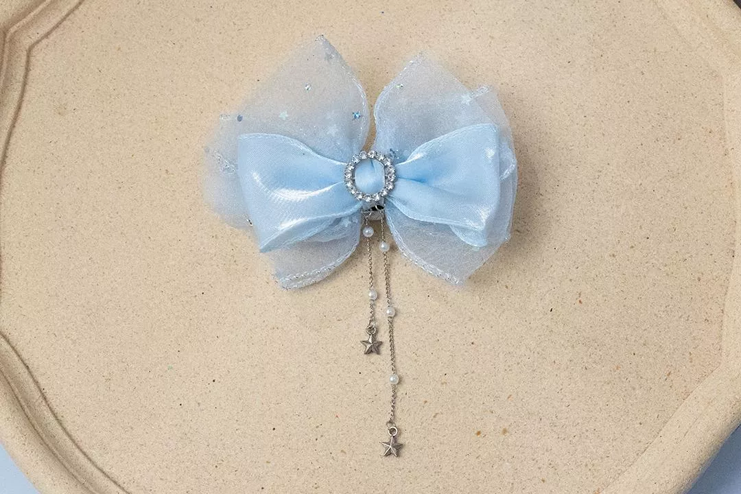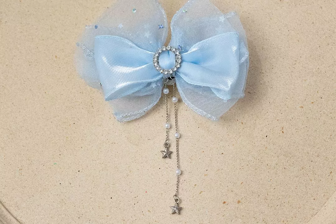 紗質面料蝴蝶結透露夢幻仙氣童話公主氣息,配上星星不同長短吊墜增加靈動的氣息
